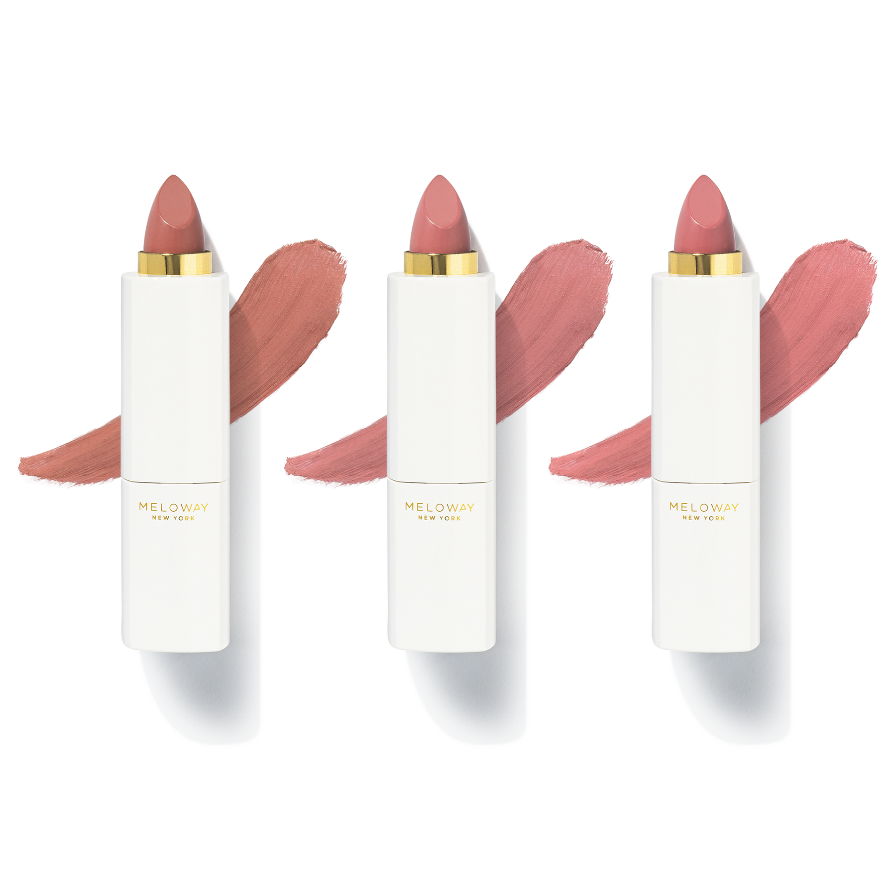 Nude, but never bare. Go three shades of nude with this light nude lipstick trio. Summer Solstice is our take on classic nude that will impart your lips with subtle warmth, making your lips the romantic standout when you’re rocking a natural look. Naked Peach-the name says it all. This delicious blend of pastel, pink, and orange is silent, but deadly. Pinky Swear is for that very moment when you can’t decide between nude and pink, which can be every day for many of us. Picture an everyday Barbie. Vegan, Cruelty-Free, Clean.
