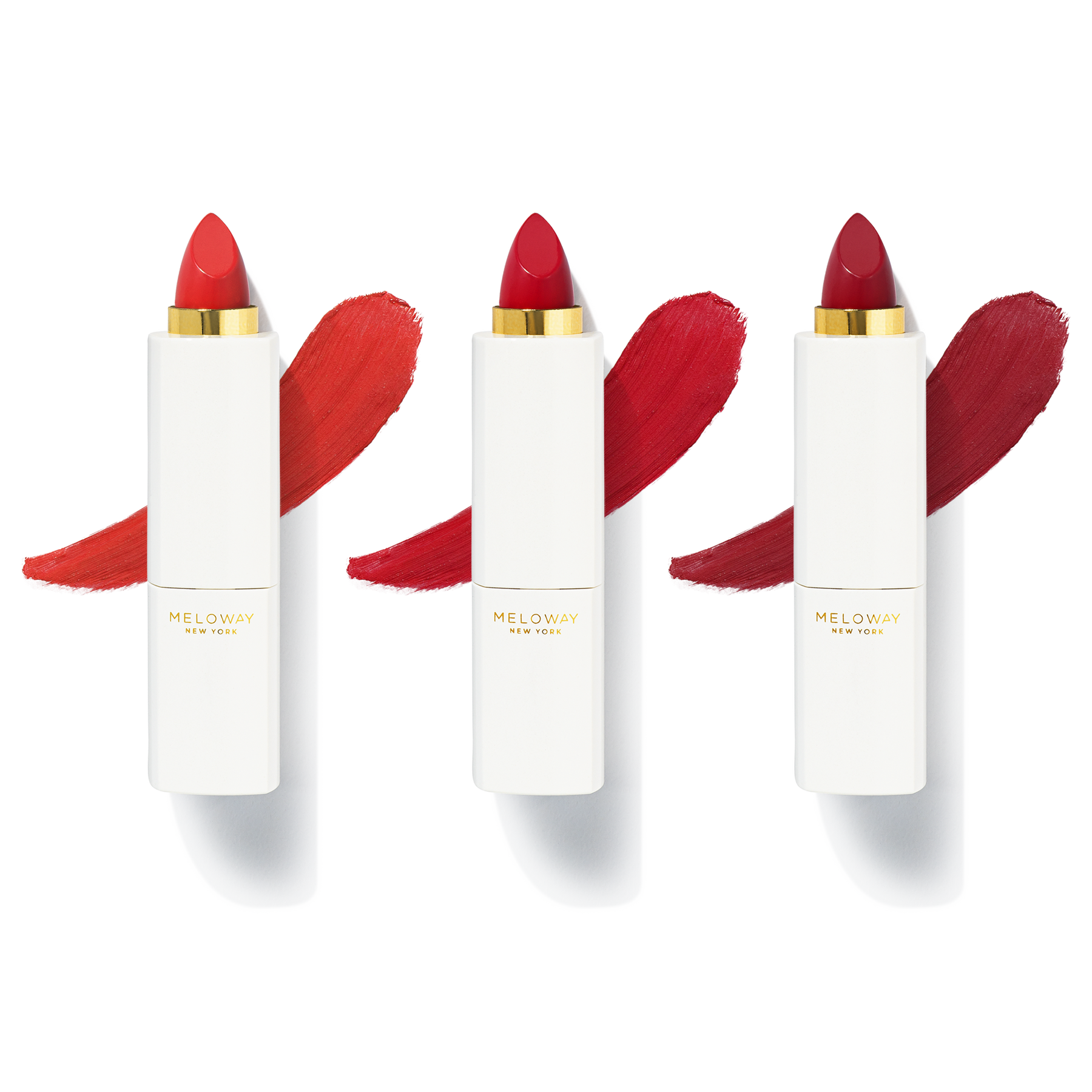 Not all reds are made the same. Gift yourself this curated trio of red lipsticks that will make you ready for red carpet all season long. New York Sunset is a fiery red with a dash of coral orange. A lot of warmth. A lot of sass. Your pout will scream passion. Sleeping Beauty is the ultimate classic red lip moment. Cool, sexy, and refined, you are a sleeping beauty. Pomegranate Punch is a sophisticated balancing act. It will impart your lips with the depth of a bitten cherry, but never veering too close to burgundy. Vegan, Cruelty-Free, Clean.