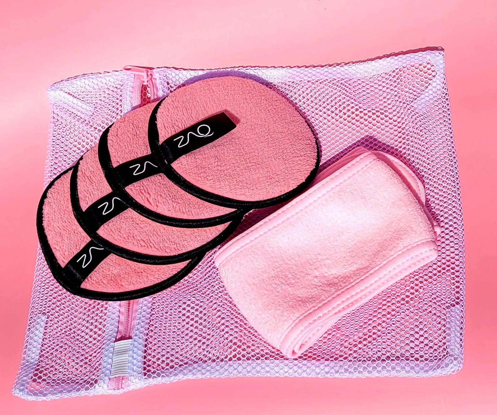Join us in our mission to reduce waste and choose a more sustainable beauty routine with our ZAQ Reusable Makeup Remover Pads 4pack with Spa facial Headband. Order now and experience gentle, effective, and eco-friendly makeup removal!