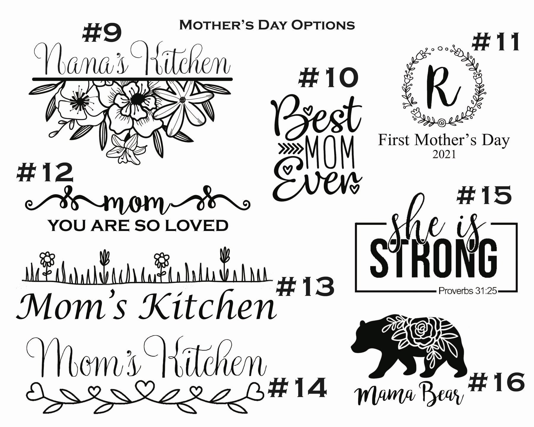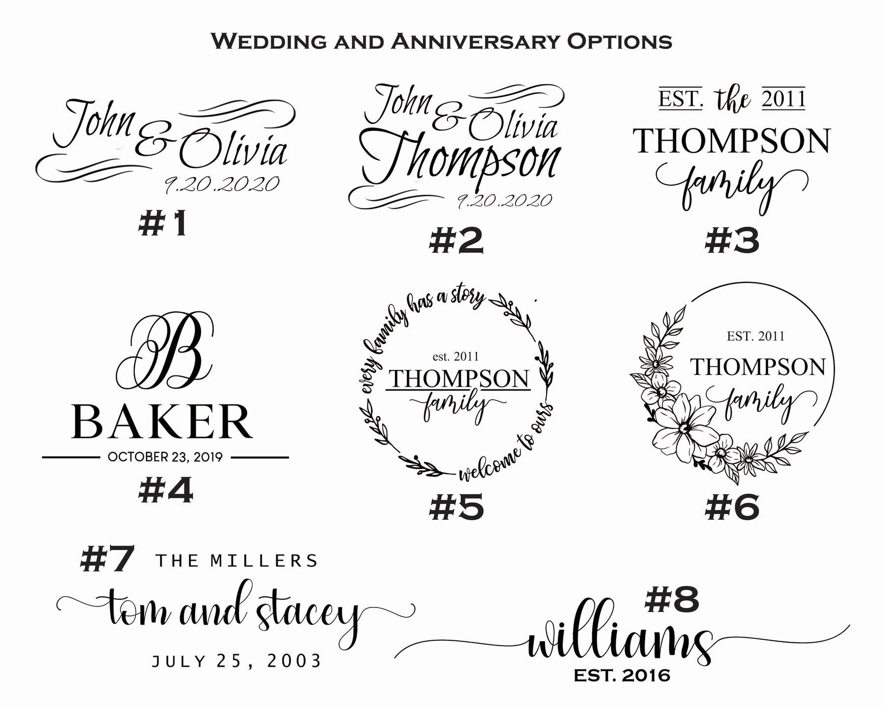 1. If you would like engraving, please take note of your selections and add them to the personalization box when checking out. You can find the box to enter the information by clicking on your cart in the upper right hand corner of your screen. If your selection requires other personalization information, like an initial, name, or date, please leave that in the box as well. If you would like a Mom, Dad or Wedding options, please indicate the number from our design options. If you would like a name or short phrase engraved, please indicate what font you want with letters (A-F). Monogram styles can be indicated with a double letter selection (AA, BB, CC, etc,). Be sure to indicate which engraving location! The more details you can provide, the better!