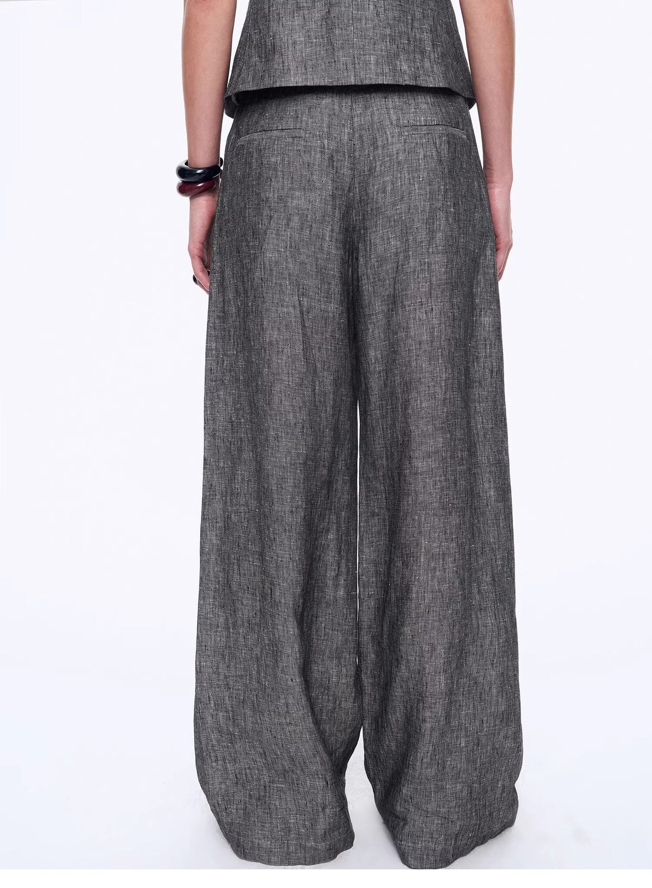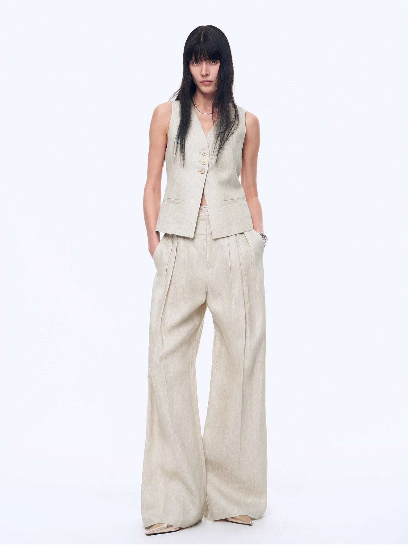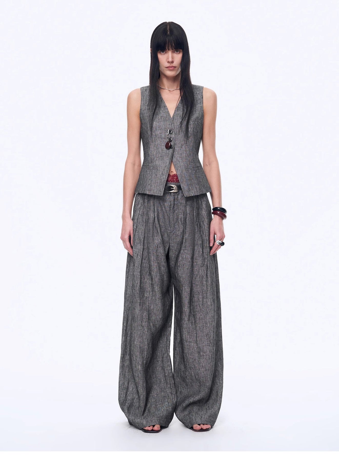 Fireladyfur Women's Linen Suit Set: Draped Vest & High-Waist Straight Trousers"Old Money Space" by Firelady Fur