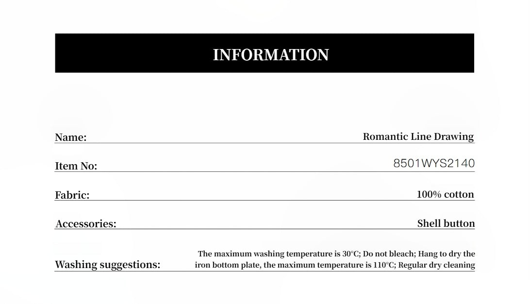 Selected Pima cotton and Brazilian cotton fibers, high-count and high-density fabrics are skin-friendly, comfortable, moisture-absorbing and breathable. The fabric has a micro-textured style, making the garment style more neat and natural. The micro-textured fabric effect adds details to the garment, making it skin-friendly but not lacking in skinny texture, making the garment look more three-dimensional and stylish.