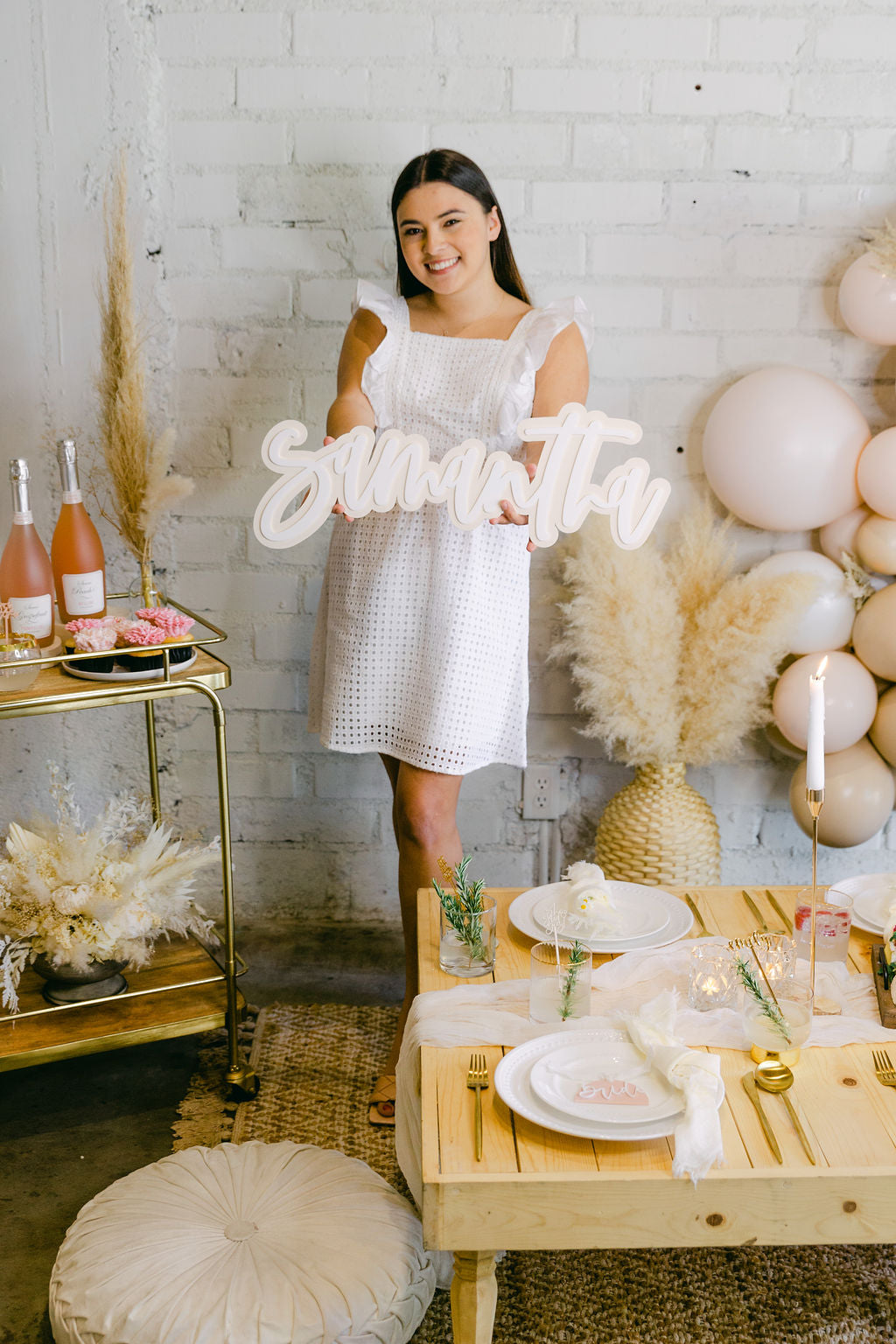 Whether you're looking to add a personalized piece to your home or party decor, our custom name cut out makes the perfect addition! Its simple two tone design adds a subtle touch of elegance to any event or space.