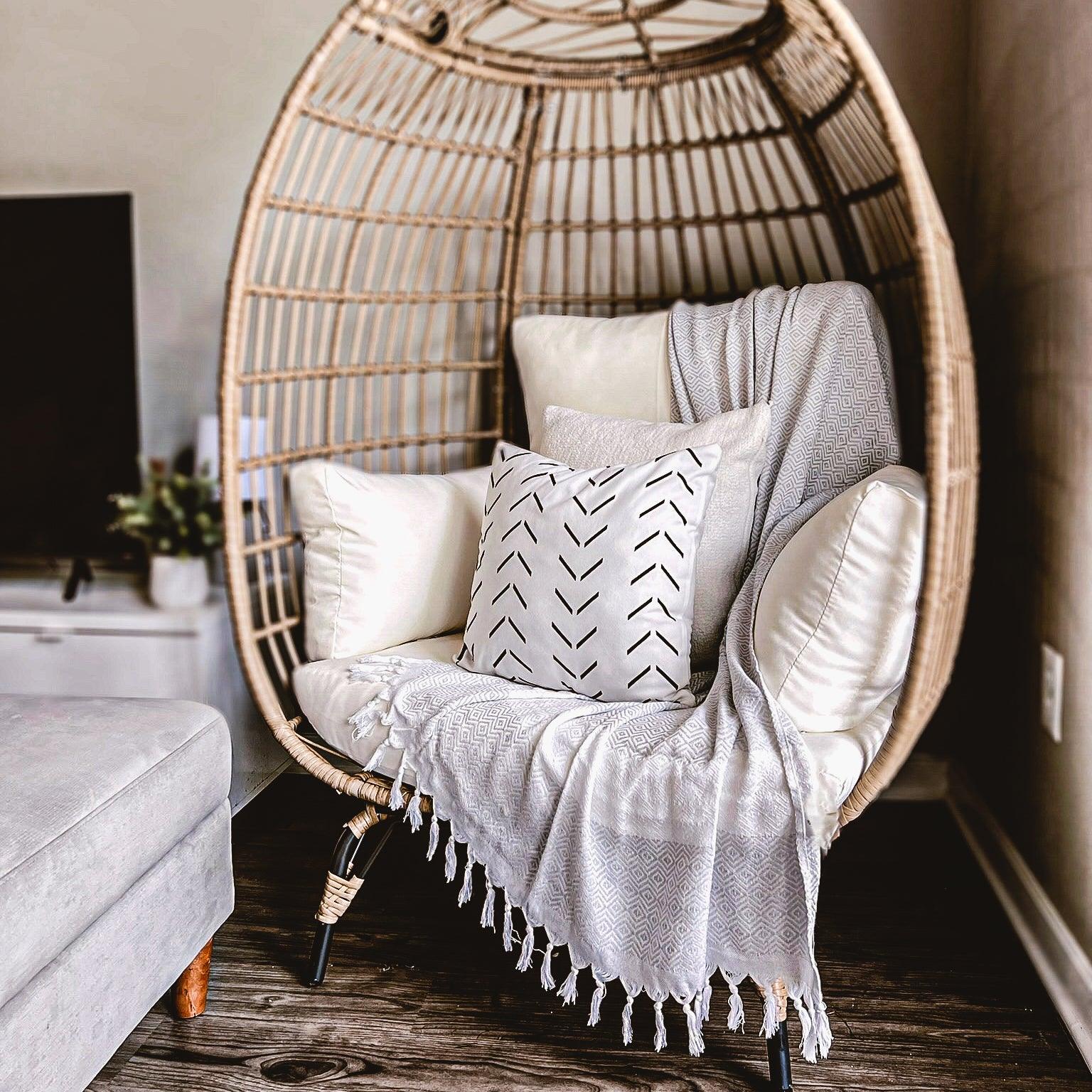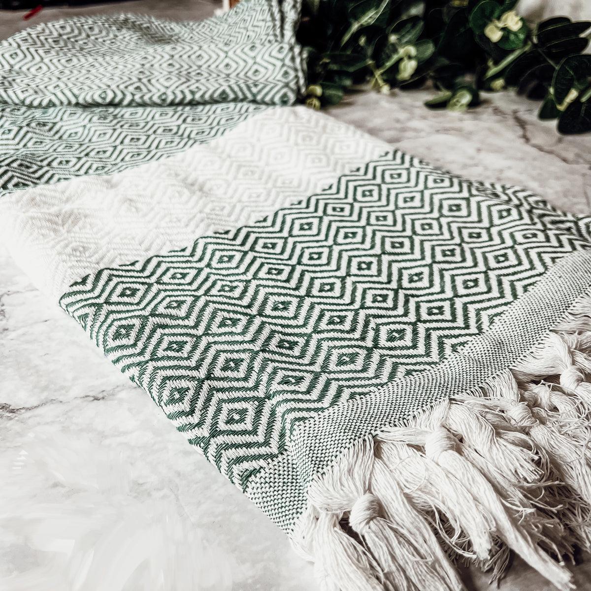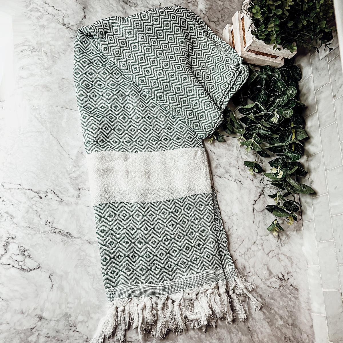 Oversized Cotton Towels Farmhouse Style, Gray Diamond Turkish Cotton Tassels Towel