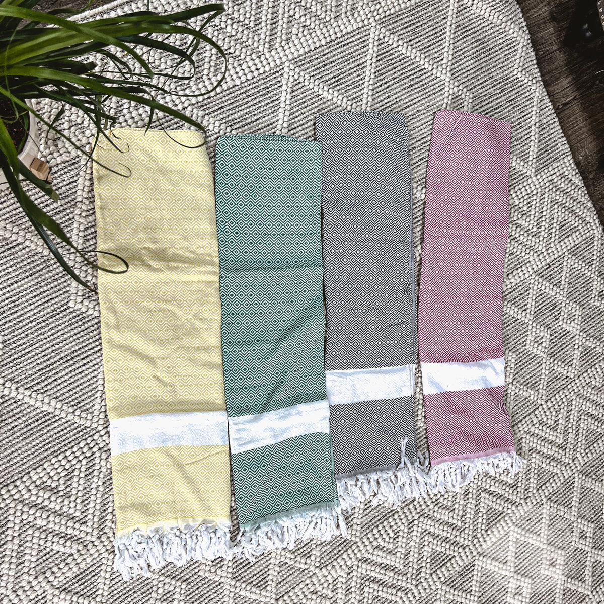 Our generously oversized, XL Turkish Cotton Towels are ideal for many things!  Oversized Hand towels, kitchen or decorative bath towels, hair towels toddler/baby towels, decorative throw blanket (as these are larger they would work as such) picnic blanket, swim towel or body towel (these are thinner and would work well during summer for such uses).