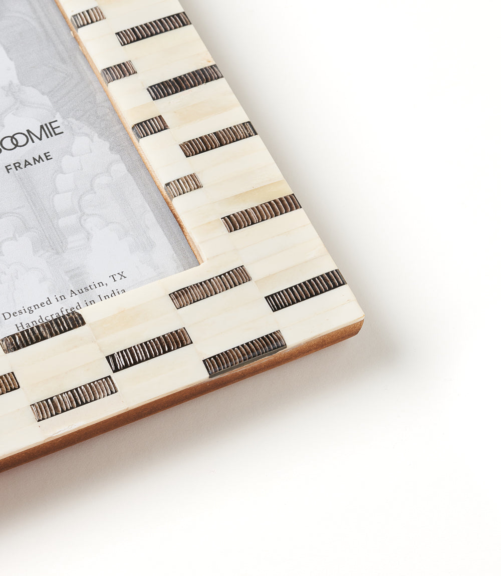 Mukhendu 4x6 Black & White Picture Frame -  Fair Trade Carved Bone by Matr Boomie