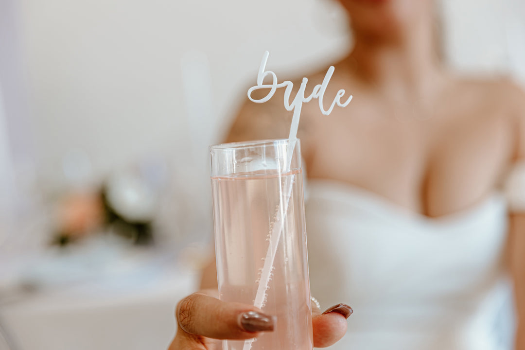 Celebrate the newlyweds with these cute "Bride and Groom" drink stirrers! Perfect for a sweetheart table, reception party or an intimate wedding event, these unique drink tags are a great way to embellish your pretty drinks! Simply pop them into a champagne flute or wine glass. Cheers to a celebration with you and your loved ones.