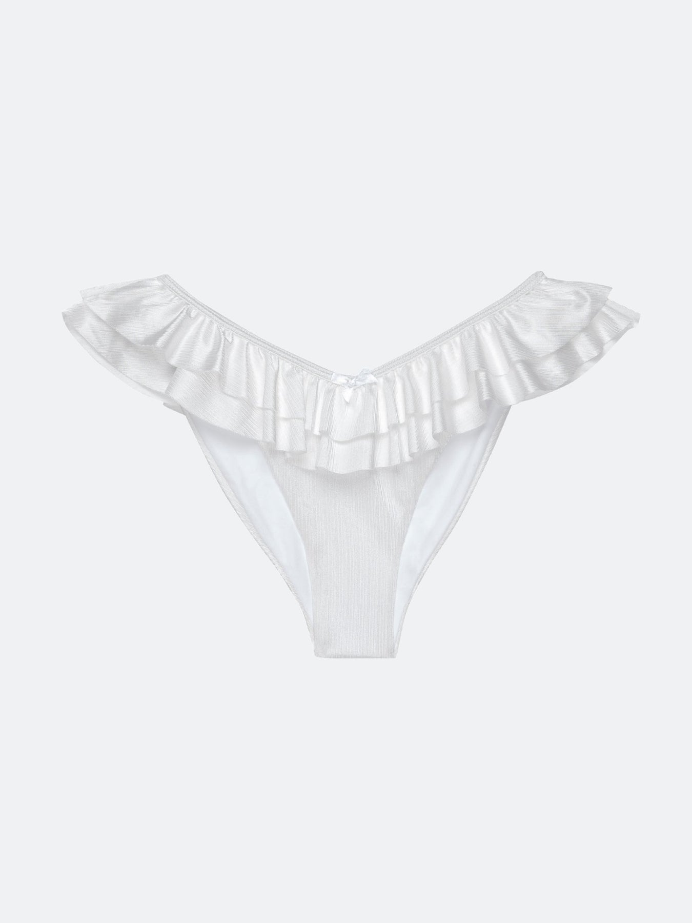 Fall in love with our ultra-feminine bikini bottom, featuring layered ruffles, a romantic bow detail at the center, and silky-smooth fabric.
