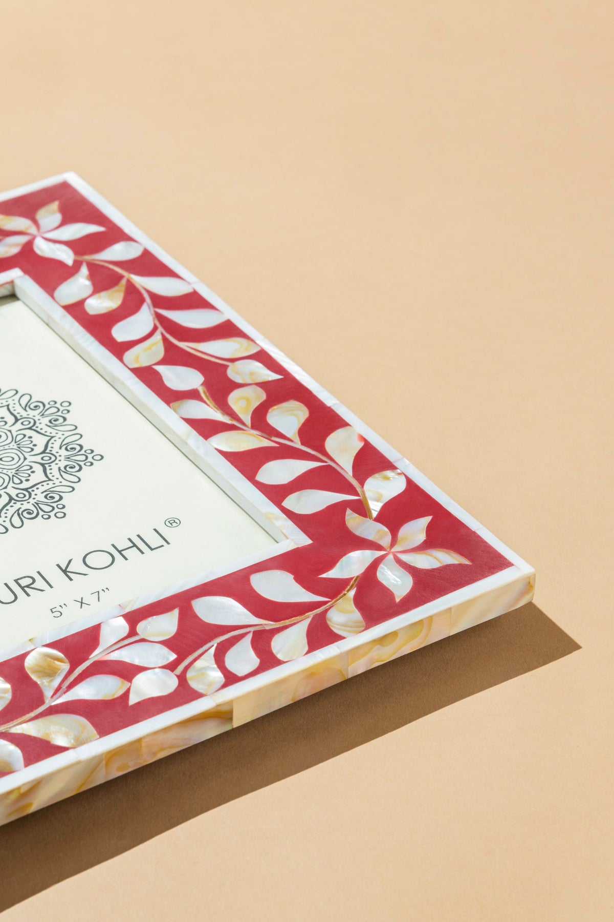 This decorative picture frame features an intricate floral design. Handcrafted by skilled artisans from Rajasthan, India. This antique design photo frame can be the perfect way to frame and display those cherished memories.