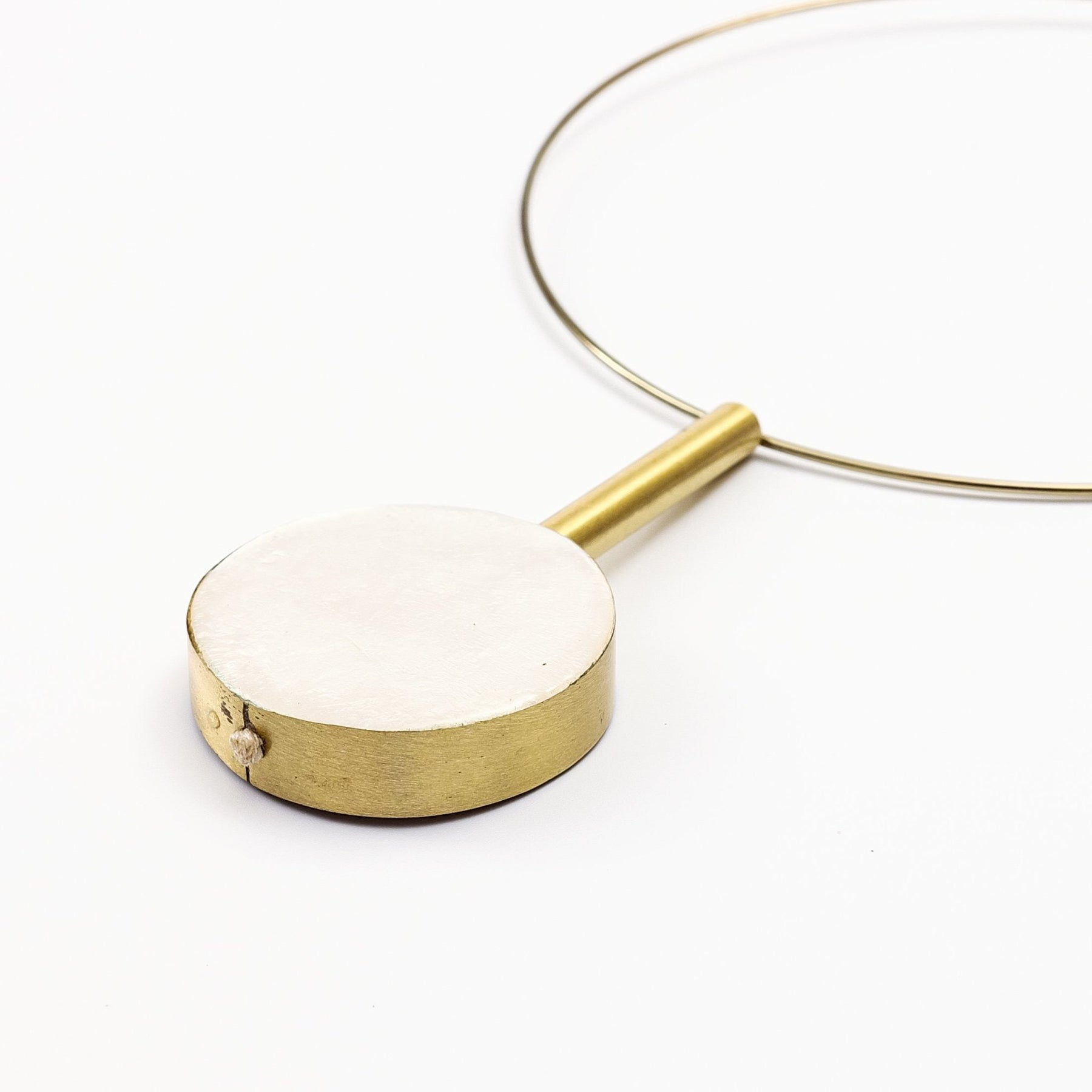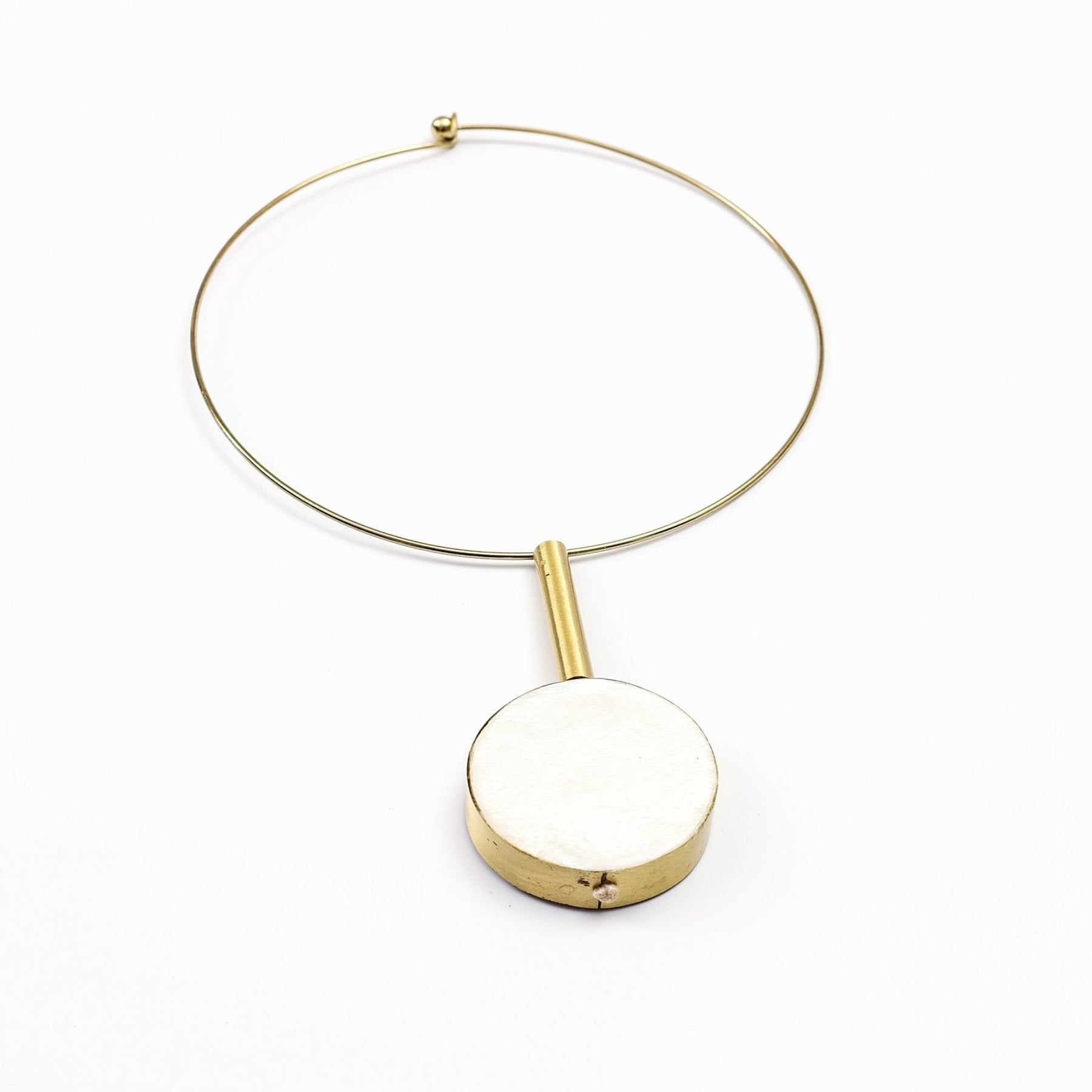 A simple yet stunning statement piece that will easily elevate all your outfits. Handmade by craftspeople in the Philippines, the brass-plated choker features a striking Capiz shell for truly modern and minimalist design. Due to the material and production process, slight variations in color, pattern, or texture may naturally occur. We invite you to embrace its uniqueness and imperfections. Each purchase empowers female artisan communities in the Philippines, who have access to fair trade and dignified employment opportunities. Locally and ethically made, conflict-free.