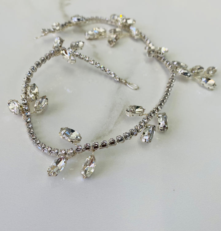 Townsend offers the perfect amount of sparkle to any hairstyle.  It's pliability makes it great as a hair vine or headband.  The ends are looped so you can add the ribbon of your choice for the look of a headband.