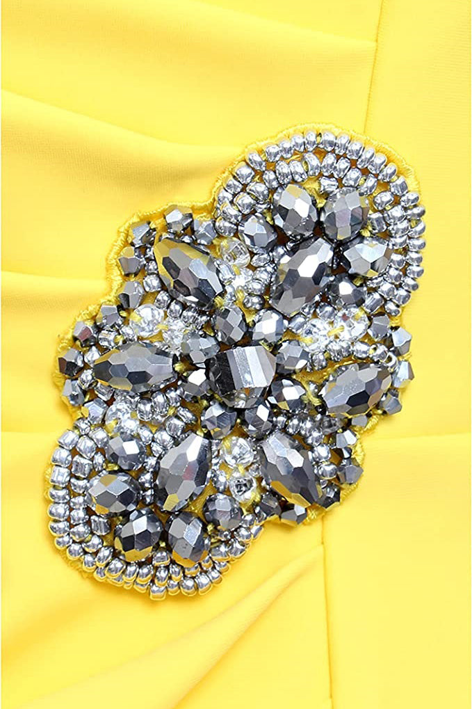 Alex Evenings V Neck Sleeveless Brooch Side Tiered Zipper Back Dress by Curated Brands