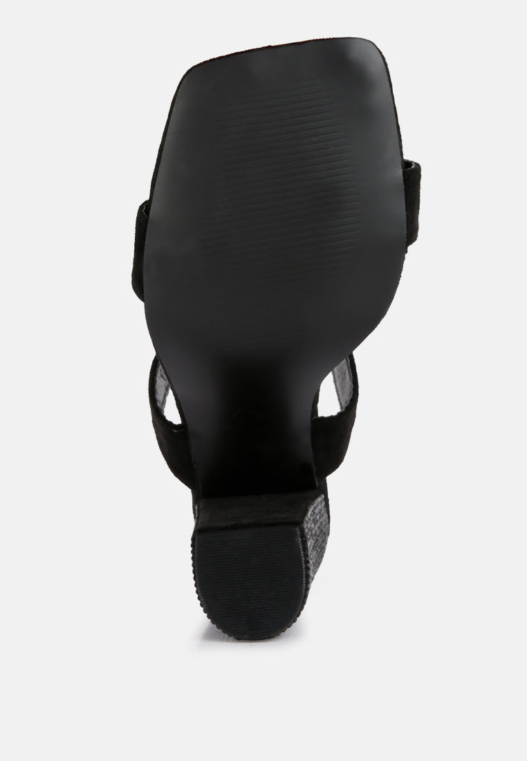 The block heel sandals are sure a beauty! They have rhinestones embellished on the heel and a minimal two-strap vamp—to secure the feet well, and a soft cushion insole making them a must-have pair in your wardrobe!