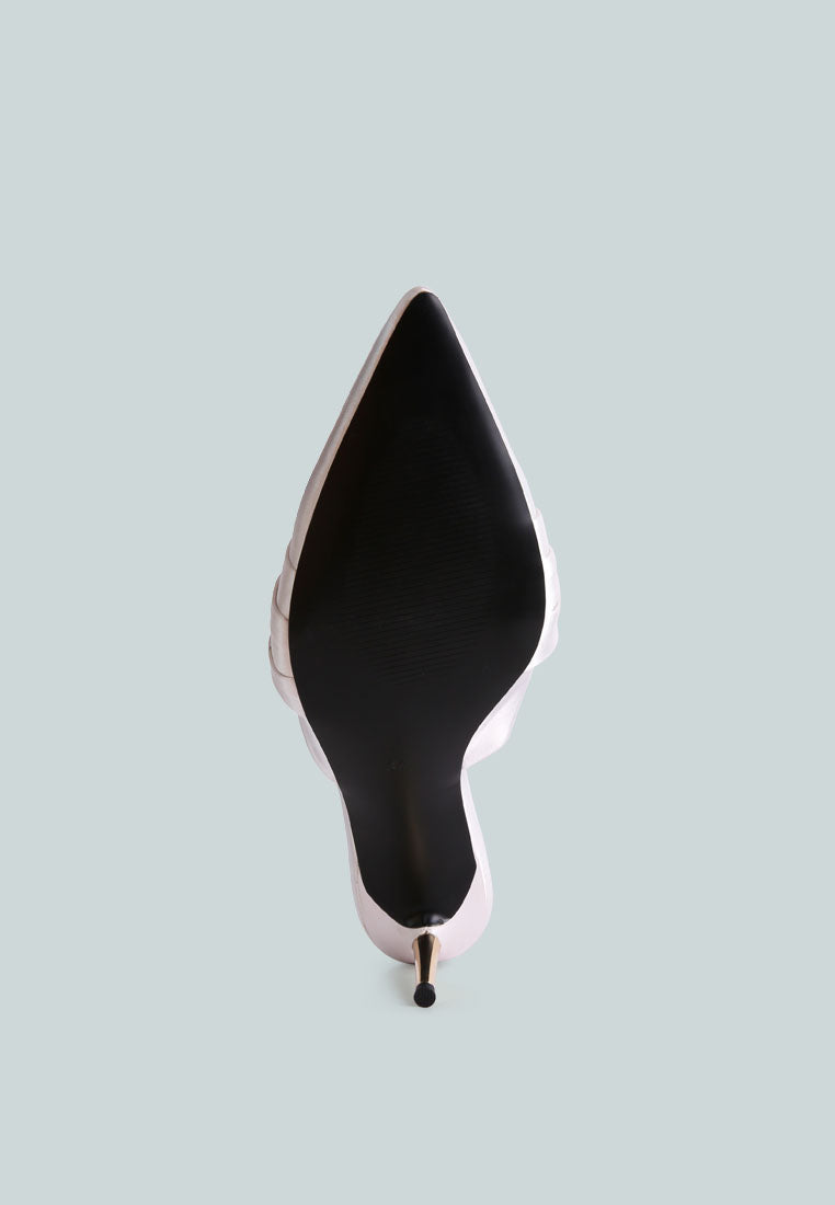 The elegant knot-detail fancy sandals are truly exquisite, boasting a beautiful satin finish that oozes luxury. The slip-on design, coupled with a soft innersole, ensures not only ease of wear but also exceptional comfort. These sandals are the ideal choice for brides seeking the perfect footwear to complement a precious wedding ceremony.