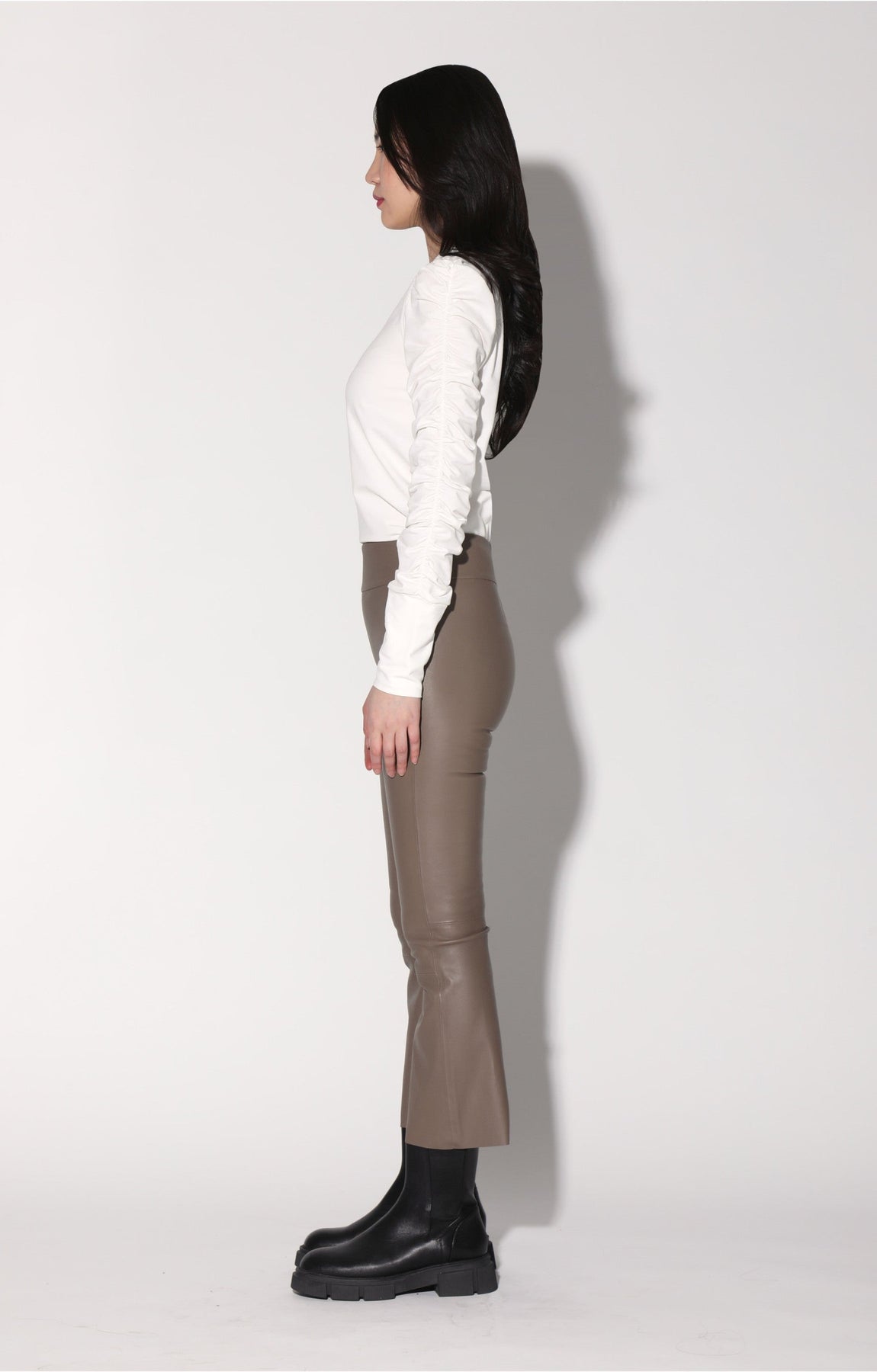 The Luisa Pant is a cropped flare that isn't short on style. Made with our genuine stretch leather, it comes in several colors