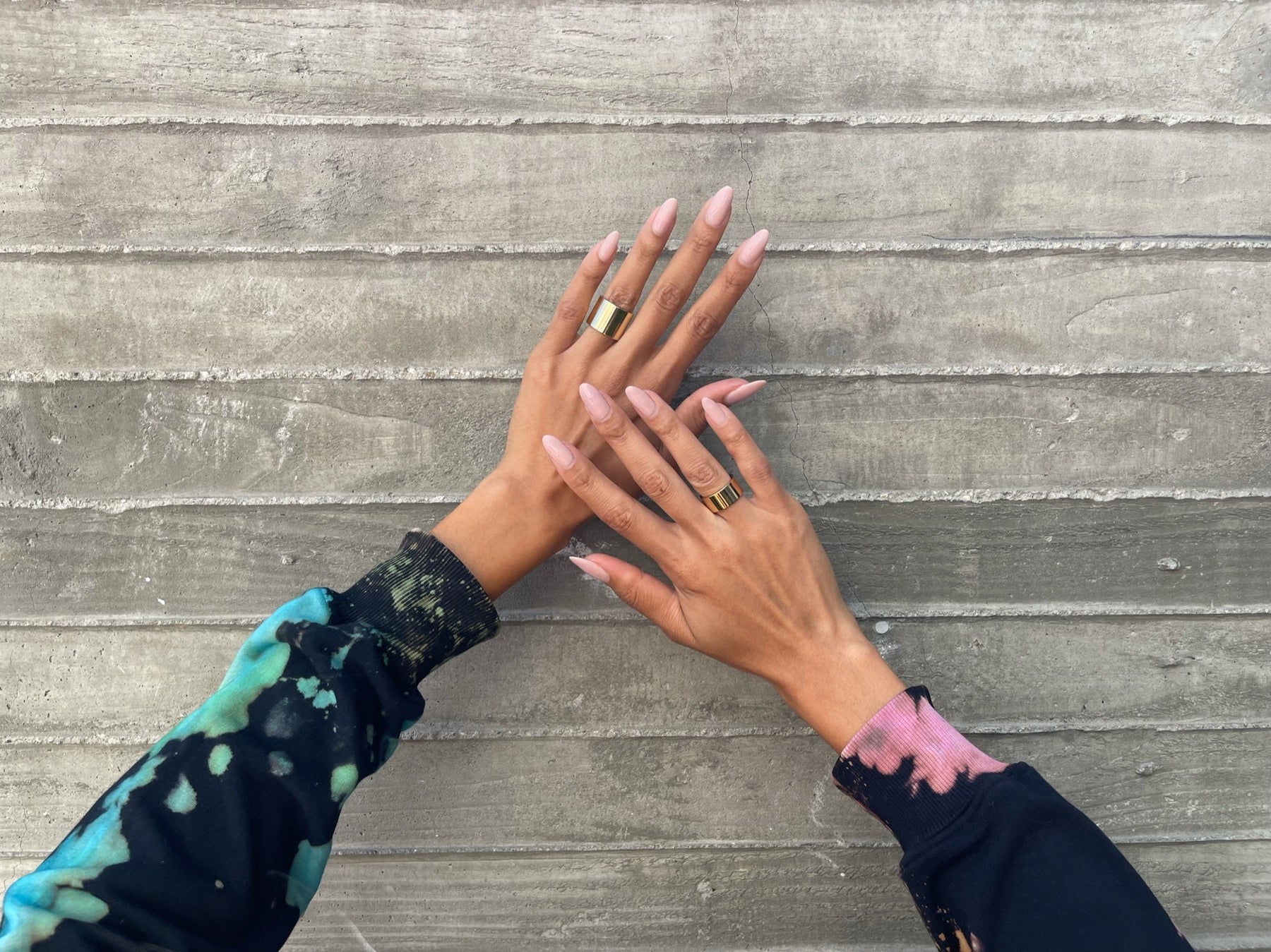 Our Thick Flat Ring is a statement piece. Wear it alone to stand out or to make more of an impact stack it with some of our other ring options.  All rings have a clear protective coating to prevent quick wear and tarnishing.
