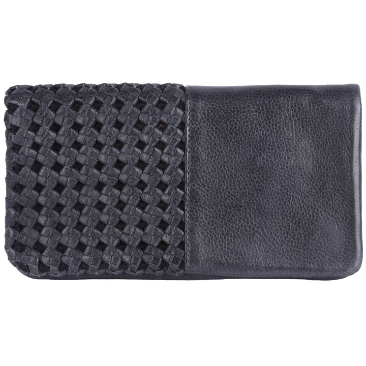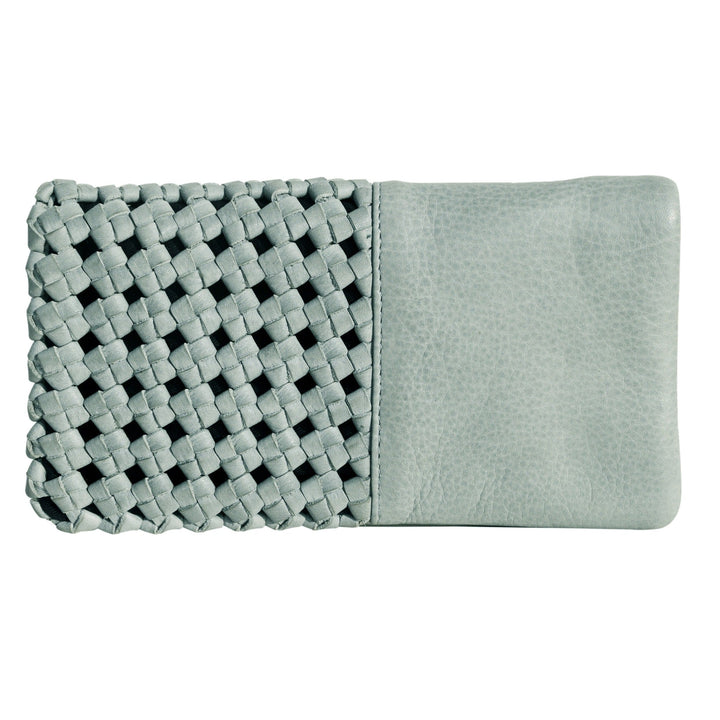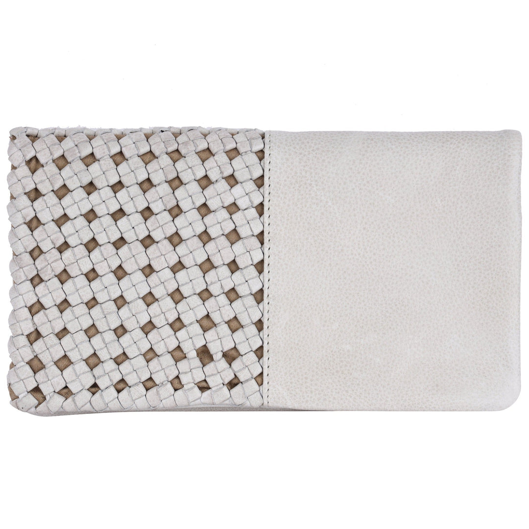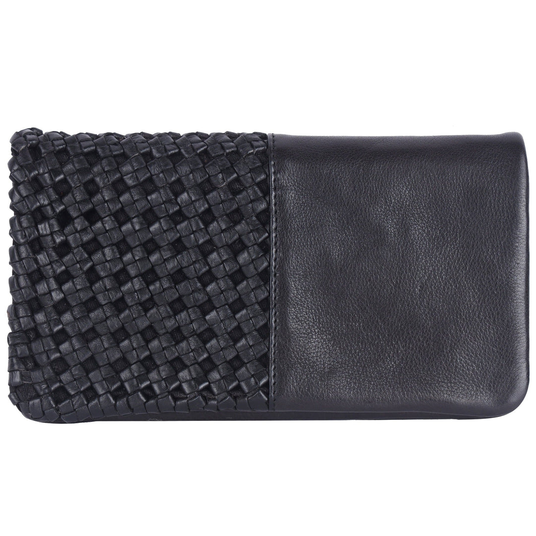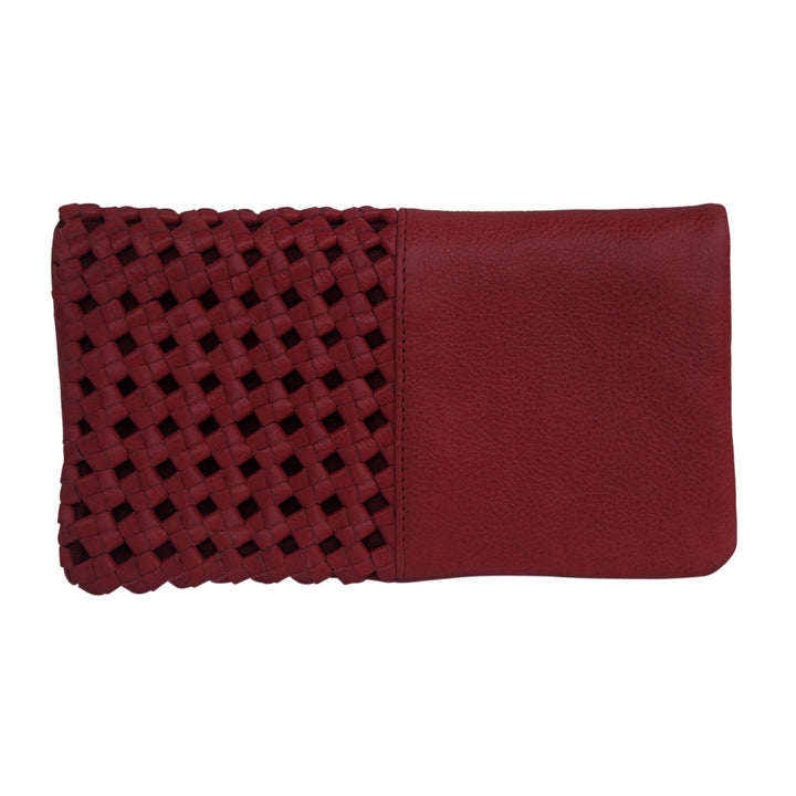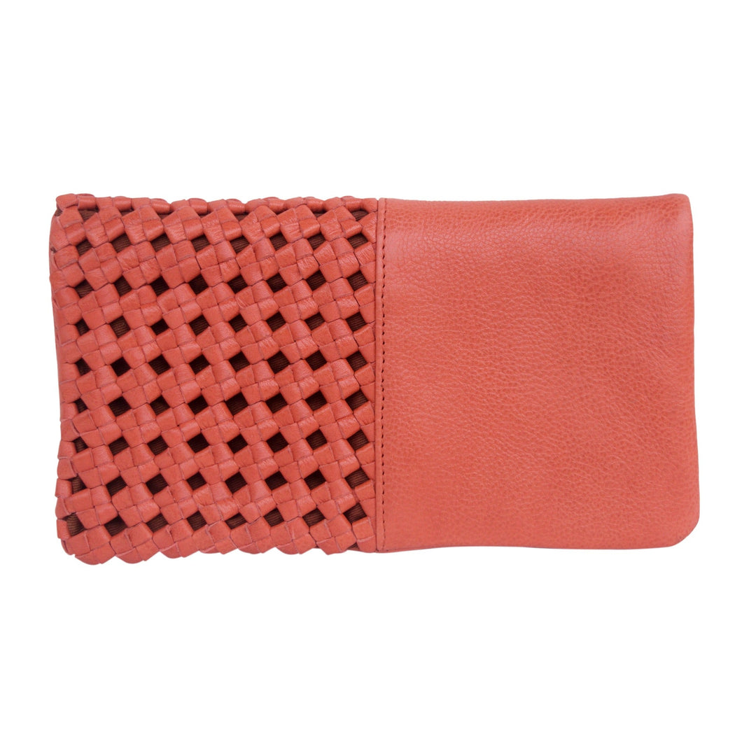Half-woven exterior, two hidden magnetic snaps for extra security plus open and zippered interior pockets. Rest your fingers in the leather loop at back for a more secure grip (and a great look 😊).
