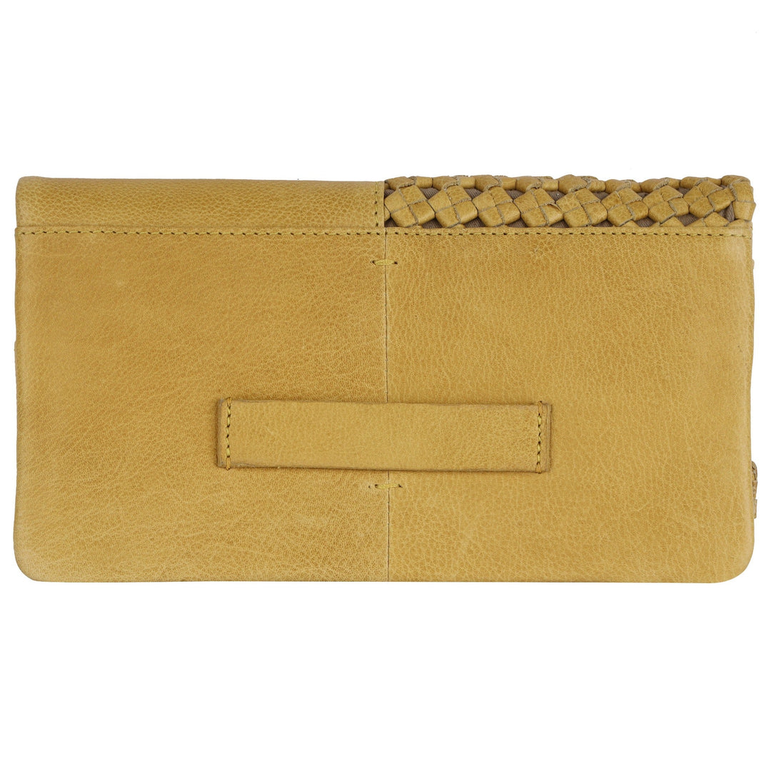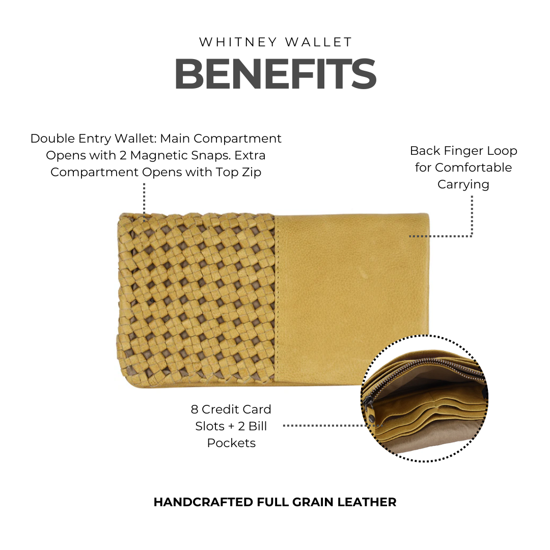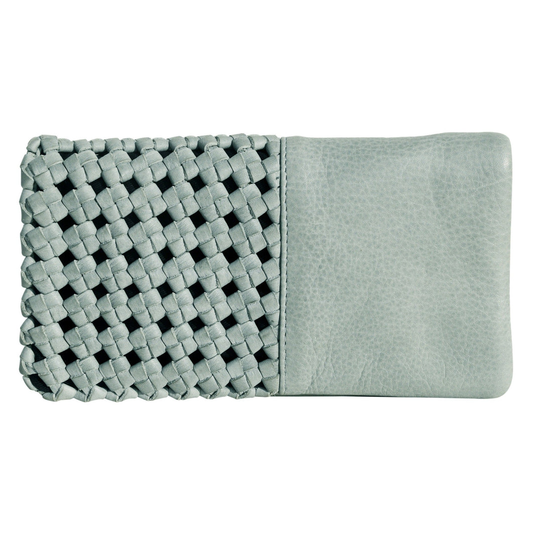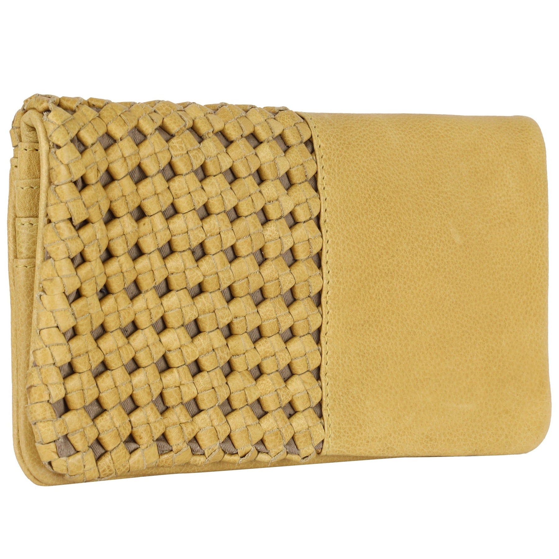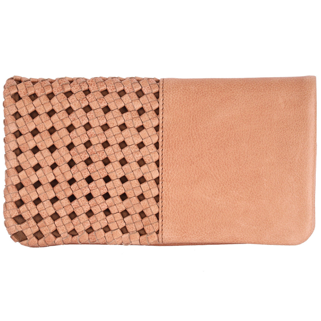 Half-woven exterior, two hidden magnetic snaps for extra security plus open and zippered interior pockets. Rest your fingers in the leather loop at back for a more secure grip (and a great look 😊).