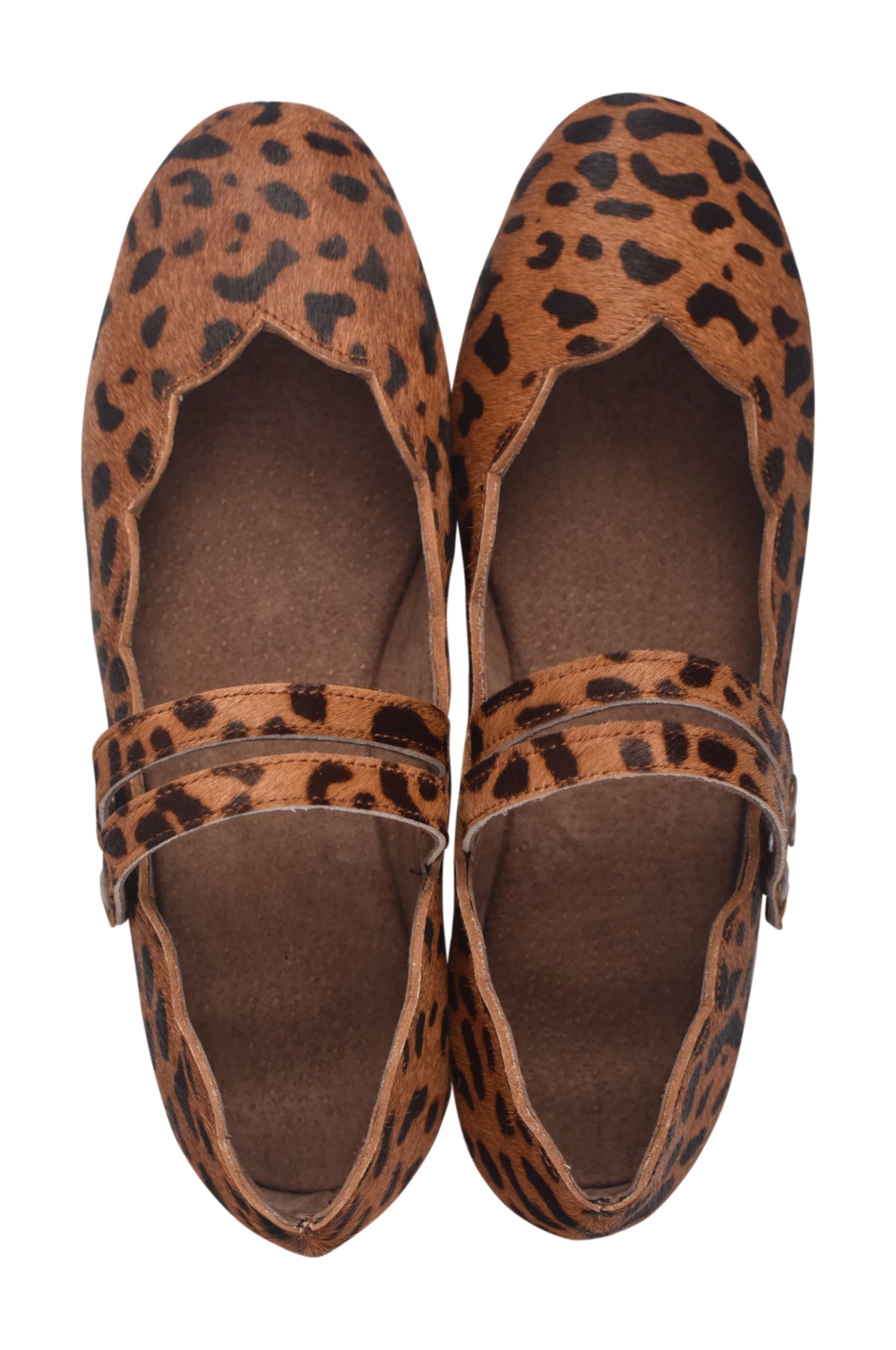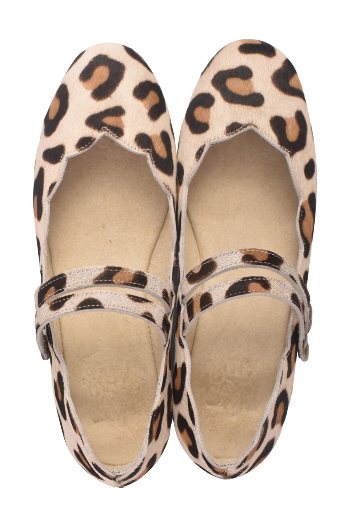 Wildly charming and effortlessly bold, these scalloped ballet flats bring playful energy to a timeless silhouette. Crafted in luxe animal-print genuine leather with double straps, they offer all-day comfort with a confident edge.