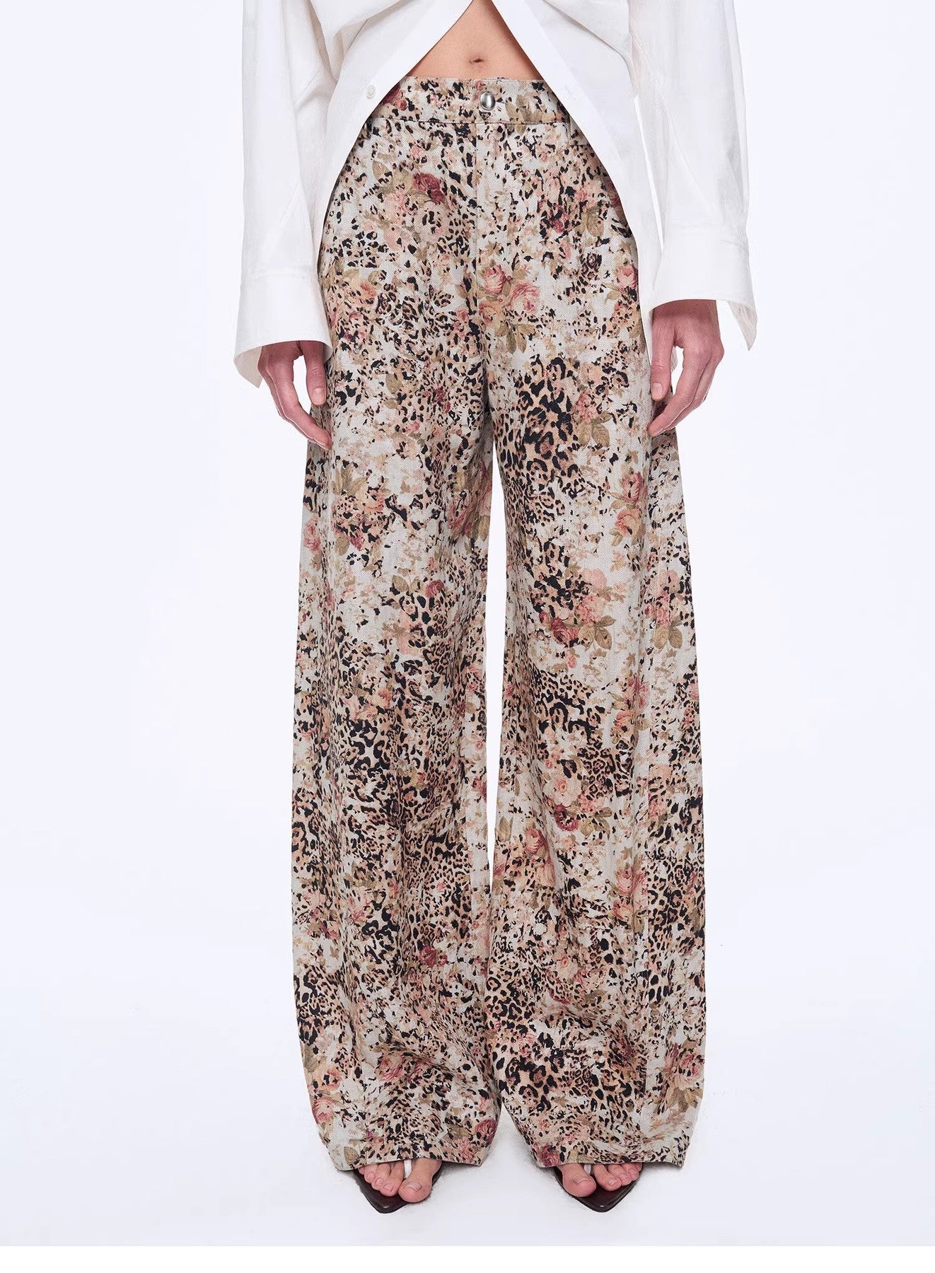 High proportion of linen blend, retains the natural linen texture, dry and not stuffy, excellent drape, smart and elegant, integrated with retro leopard floral print, complex and simple balance, mysterious and romantic, and has practical charm.