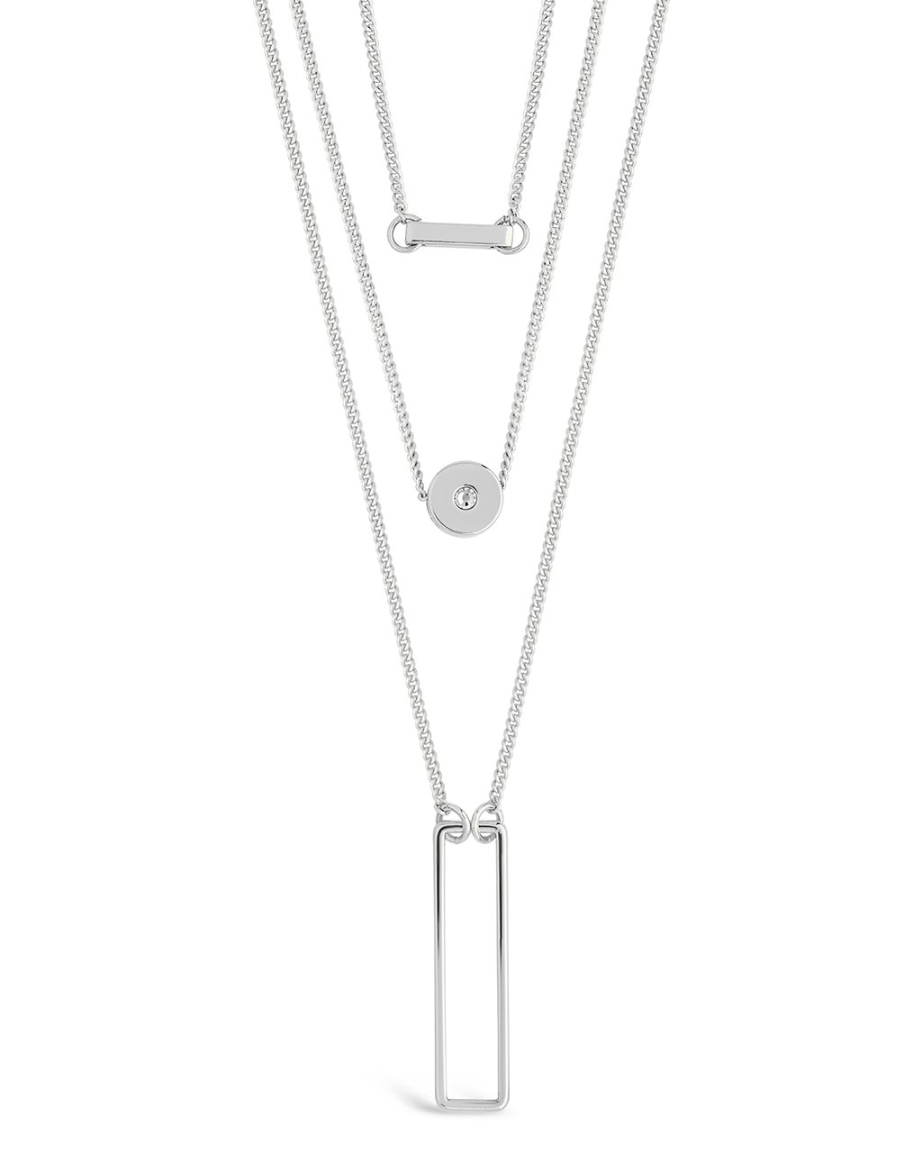 Bar, CZ Disk, Open Bar Layered Necklace by Sterling Forever