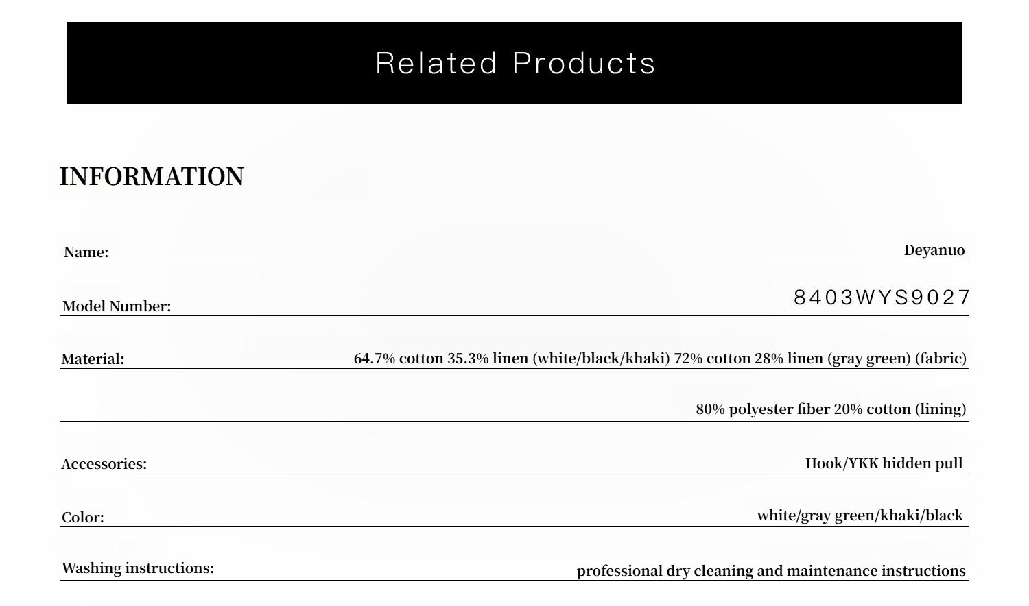 High-count long-staple cotton is interwoven with hemp. Hemp is the most advanced hemp among all hemp. It has a natural antibacterial effect and is more refreshing and comfortable when blended with cotton fiber. During the dyeing and finishing process, the warp and weft density is increased again after the salt-shrinkage sand-washing process, achieving a tight feeling that cannot be achieved by weaving. The fabric surface presents a slightly wrinkled texture, which is more high-quality in both touch and vision.