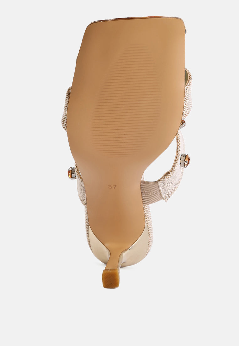 Our slip-on style ensures you can slip into these beauties without any fuss, making them an ideal choice for wedding shoes, wedding guest shoes, or any fancy events. Whether walking down the aisle, attending a friend's wedding, or gracing a fancy soirée, these diamante-embellished sandals are about to be your forever go-to!