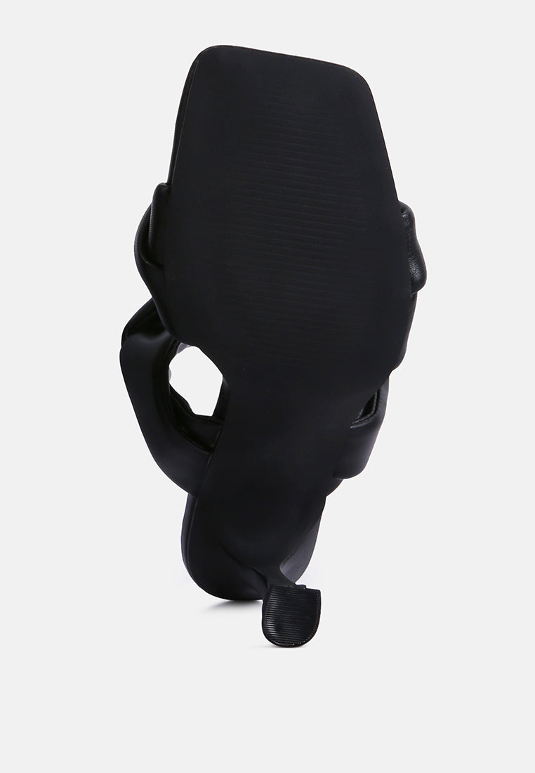 Introducing the tempting spool heel sandals that come with beautifully twisted strap detailing. They're a trendy, street-smart footwear pair that will elevate your style while providing unparalleled comfort. These sandals boast light cushion insoles and are accentuated by twisted, stuffed faux leather straps, giving them a distinct and trendy look and feel.