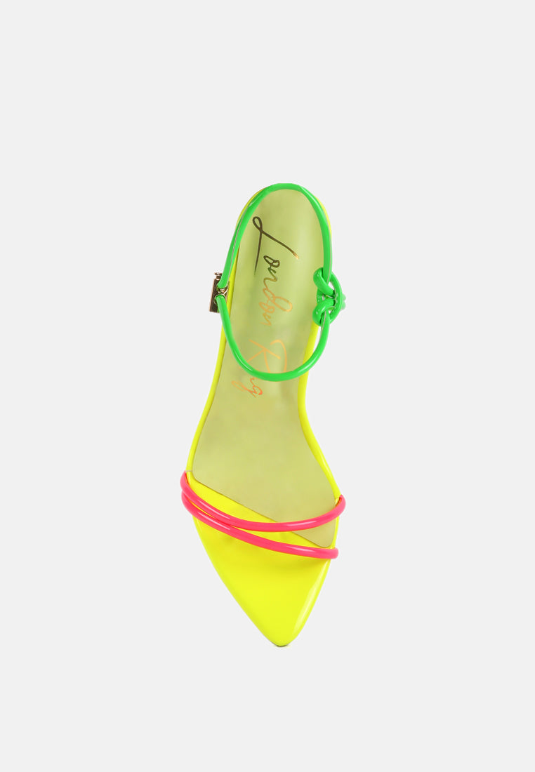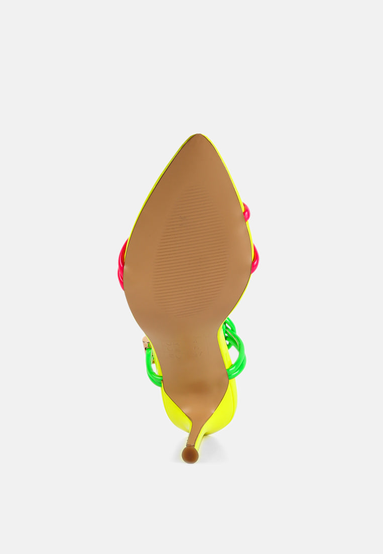These open pointed-toe high-heeled sandals are a true beauty and have been quite the rage recently. This stylish shoe features an interesting drawstring-type ankle band for a unique fit. Stand out this holiday season with their supreme comfort and style.