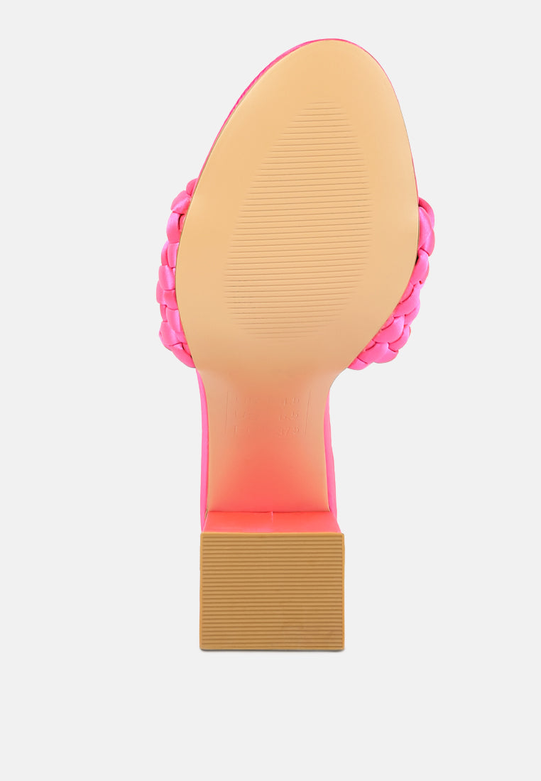 These braided satin triangular block slider sandals feature a lightly cushioned insole for added comfort. The braided texture with a sheen imparts a rich and luxurious look. These stylish block-heel sandals are easy to glide in, making them perfect for all-day comfort and various events.