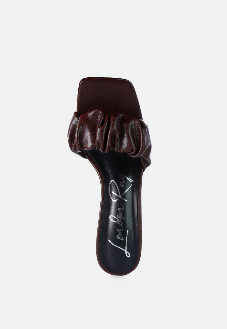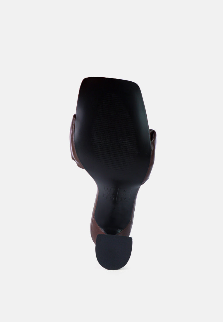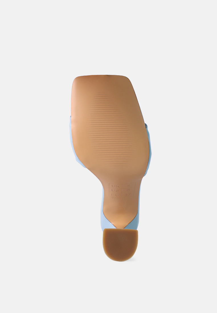Mid-heel Slider sandals in soft faux leather with square toes; they are stylish, are versatile to match with all of your outfits. Simply comfortable mid-heel sandals have some light cushioning to cut stress on your feet.