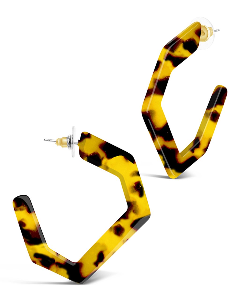 Go for the bold with these resin hex hoops! These open geometric stud hoops are sure to get your OOTD noticed everywhere you go. Available in water lily, sea glass, tortoise, sherbet, mermaid, brown leopard, pink marble, light confetti, and grey leopard tones.