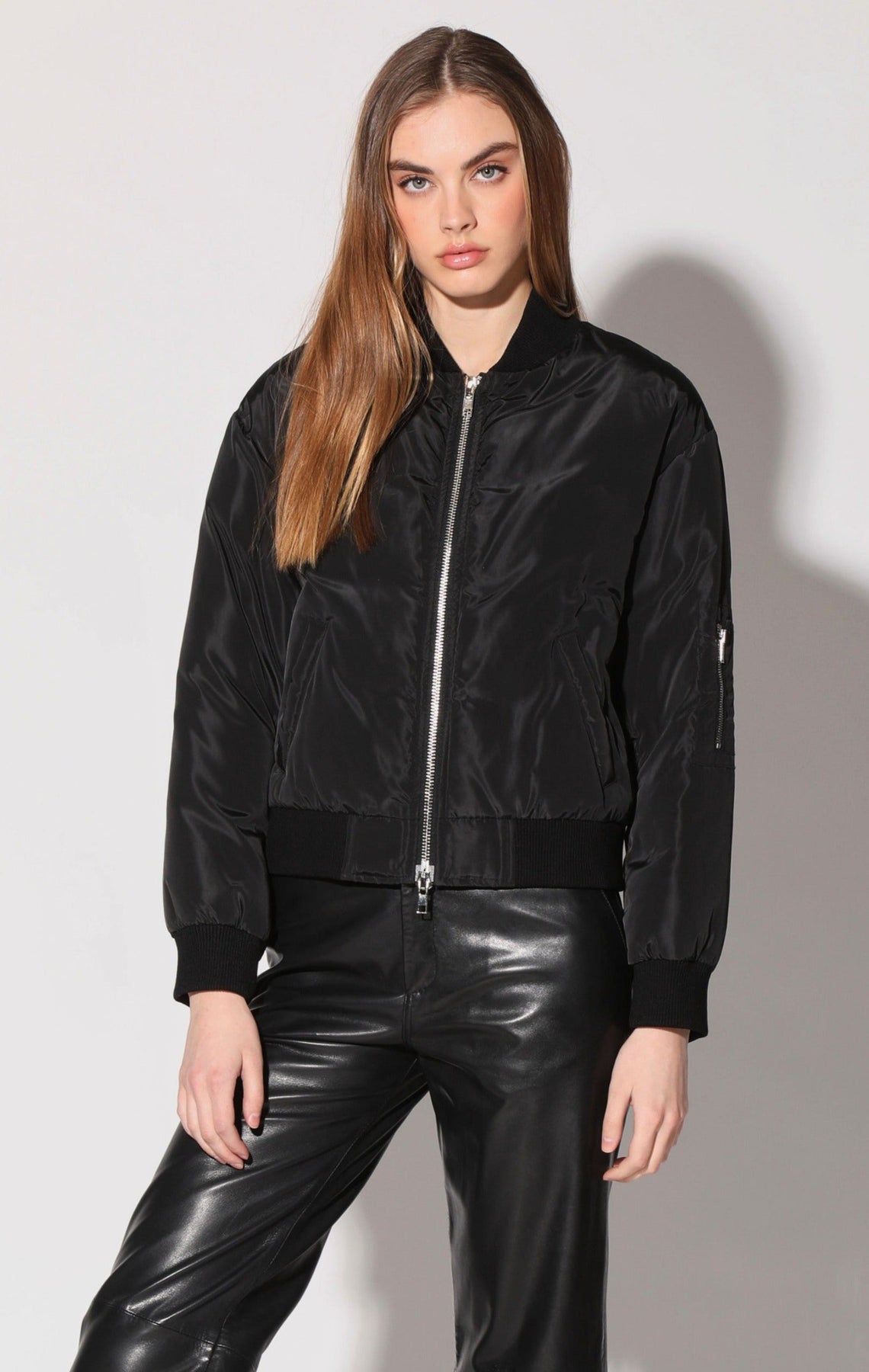 Add classic cool to your closet with the Elias Jacket. This bomber puffer style includes a sleeve zip patch pocket and exposed center front double ended zipper closure