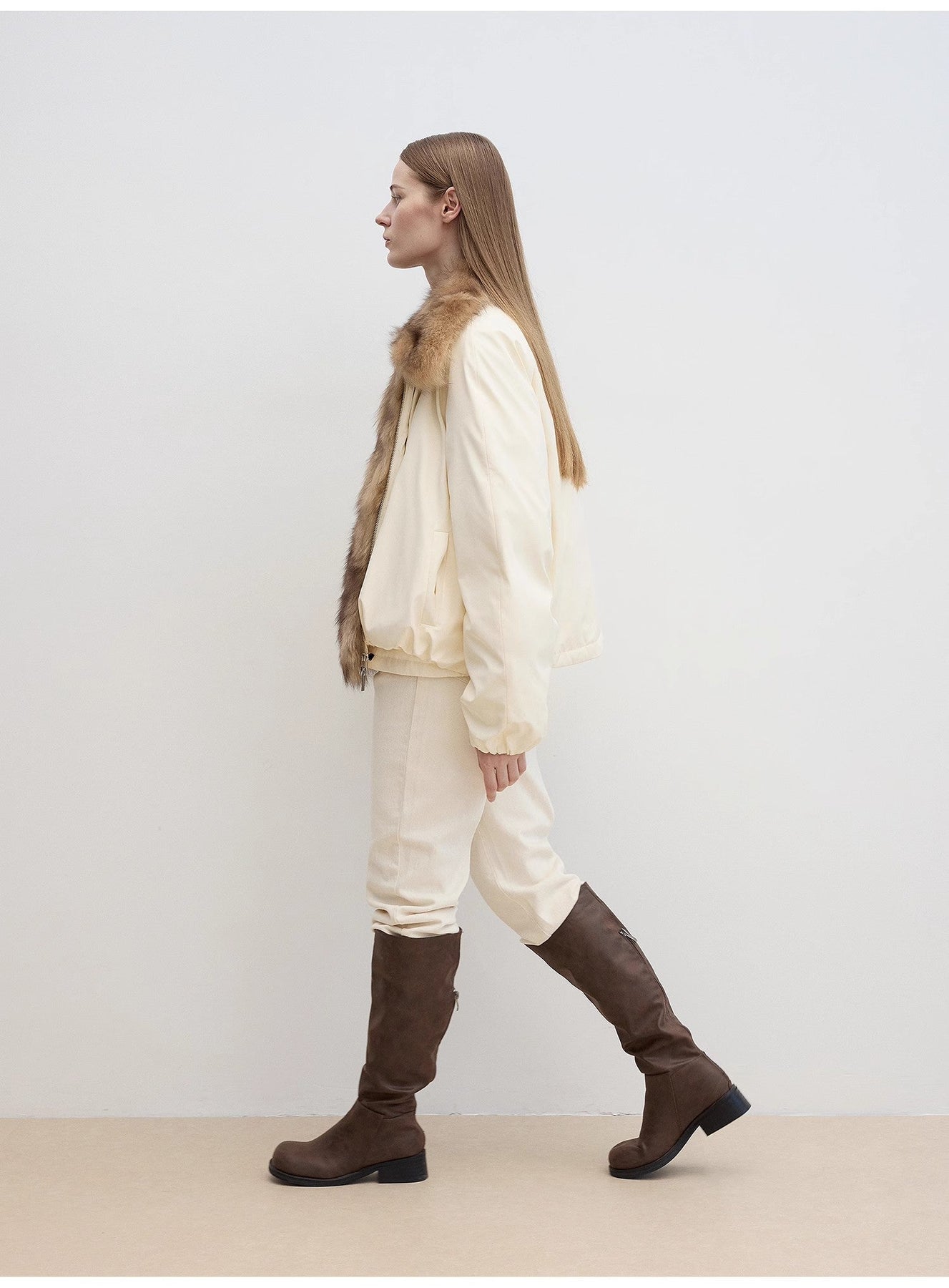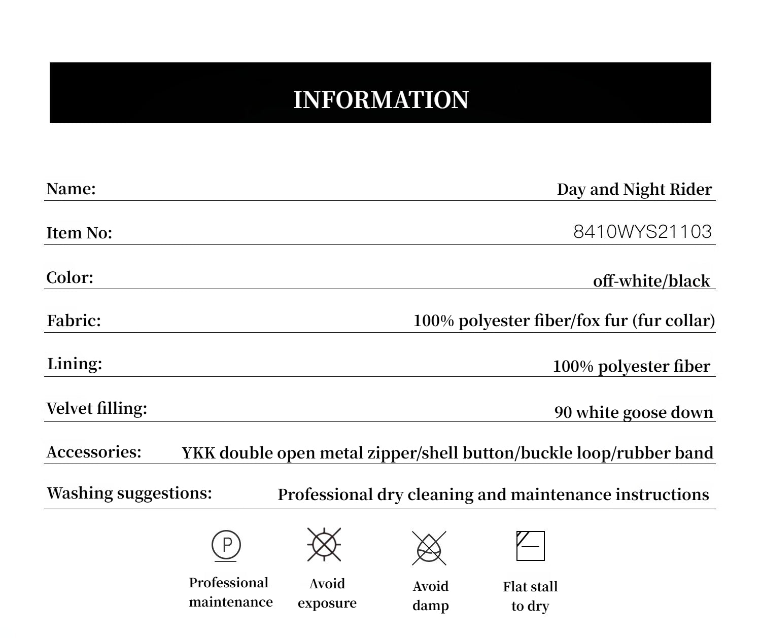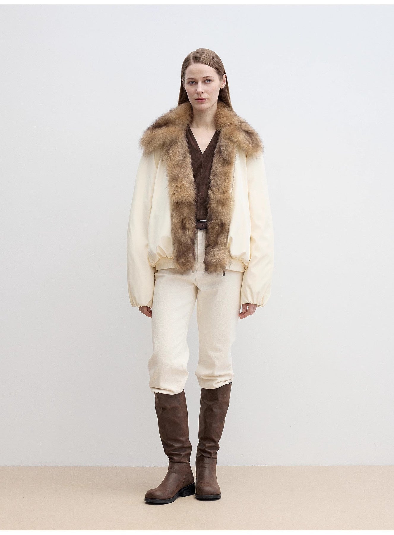 The textured waterproof fabric is breathable and light, and the high-quality white goose down filling is warm and light, comfortable and practical. The detachable contrasting fox fur collar is warm and skin-friendly, modifies the face shape, makes you look younger and playful, and adds a sense of layering. The hem is pleated to create a full and balloon-like body shape, which is loose and stylish, and can easily reduce your age.