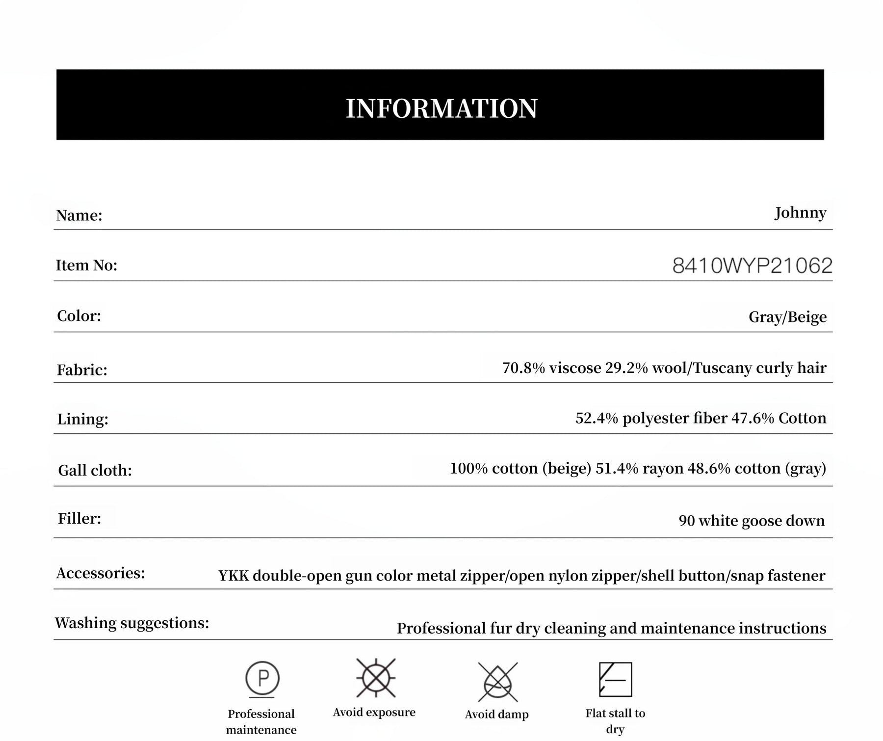 The fiber structure of white goose down is soft and fluffy, light and stress-free, with good resilience, always maintaining a crisp and full shape. Each down is processed with high-cleaning technology, and the down is clean, full, and odorless. Comfortable and breathable cotton fabric with a pressing process reduces displacement and deformation, visually slimming, increases the sense of shape, and is comfortable and practical to wear.