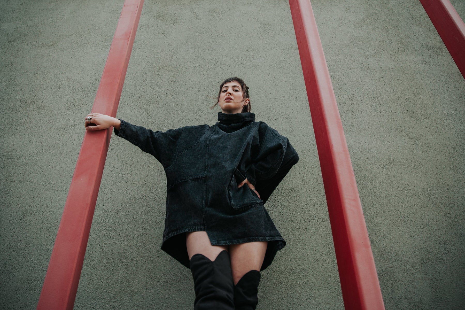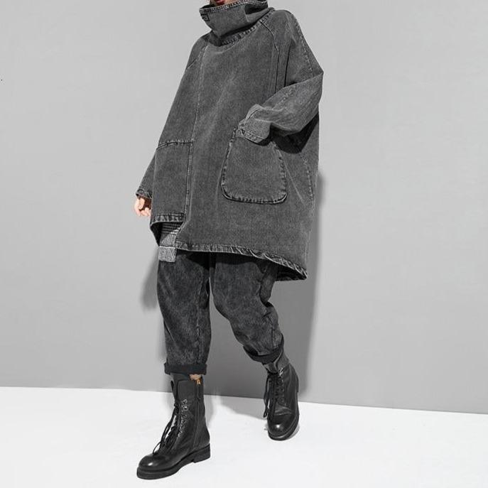 Reon Turtleneck Loose Denim Sweatshirt by Marigold Shadows