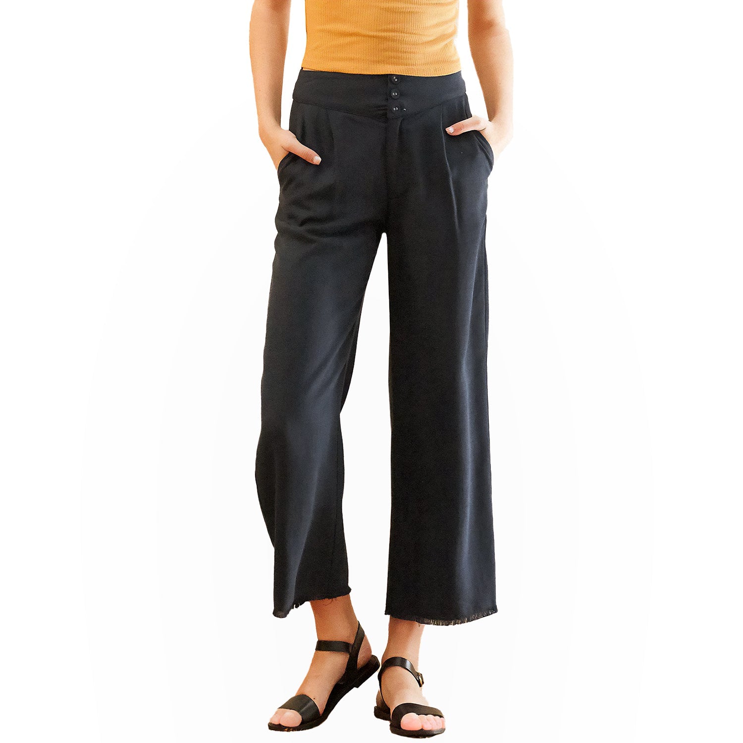 Women's Fringe Hem Cropped Pants in Navy by Shop at Konus