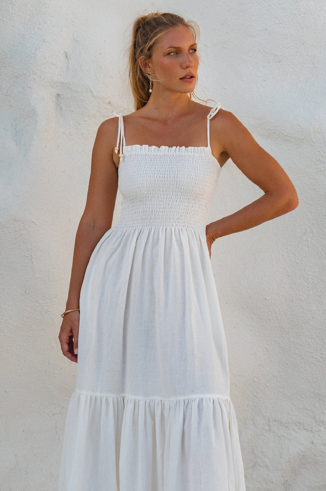 Paradiso Strappy Linen Midi Dress by Bali ELF