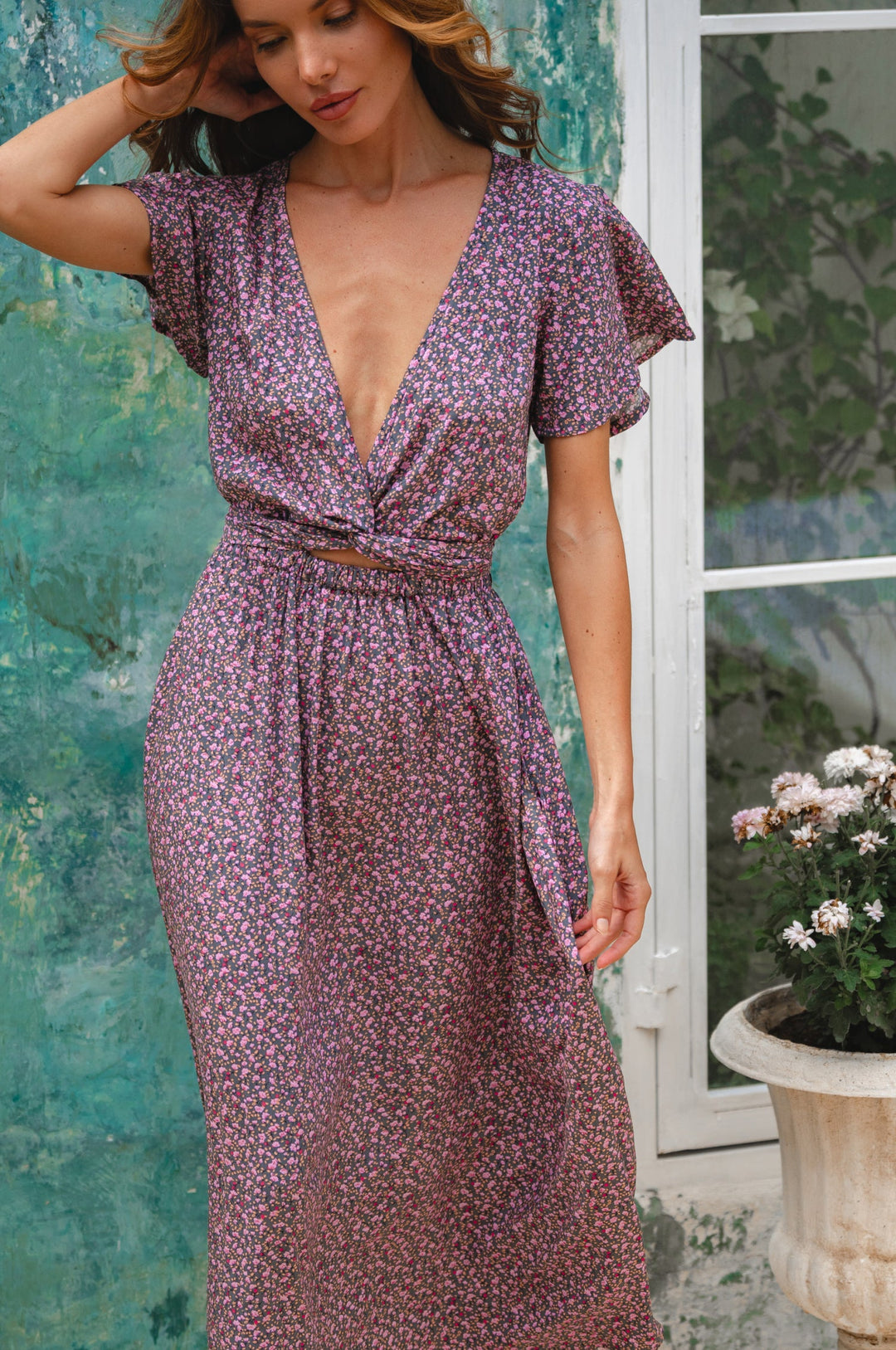 Handcrafted from floaty breathable rayon Samara dress is designed in a perfect midi silhouette with elasticated waist and convertible front detailing. Wear it crossover on the front in a wrap style for more coverage or tie it into the knot to show a little skin. This dress radiates endless feminine charm and will be your go-to summer piece.