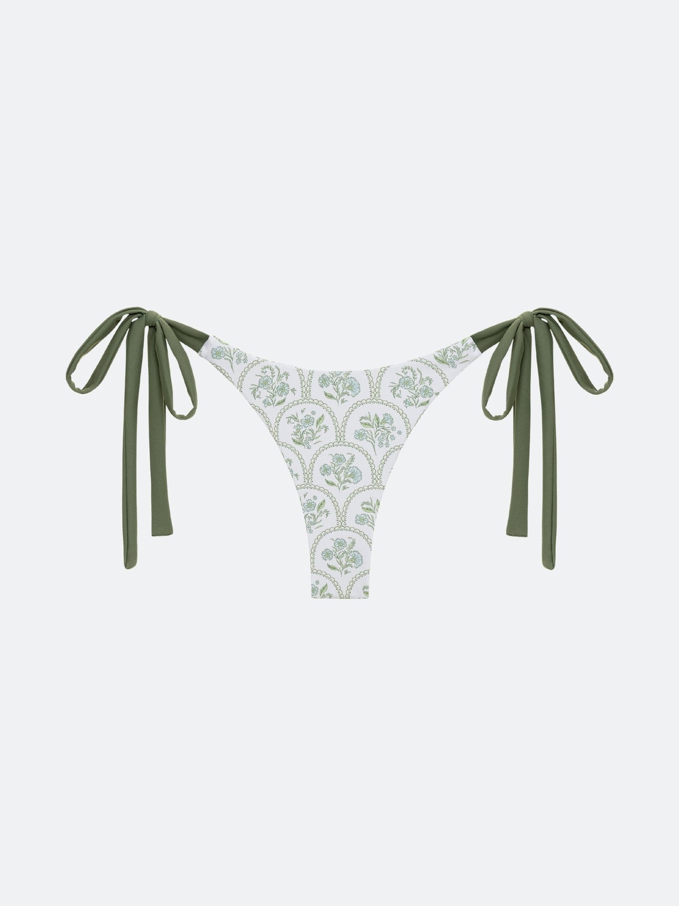 The Madaket Bikini Bottoms are fully reversible with a custom floral tile print on each side. Ties at each hip provide support and a stylish look. These bottoms can be pulled up to create a high leg and offer moderate coverage.