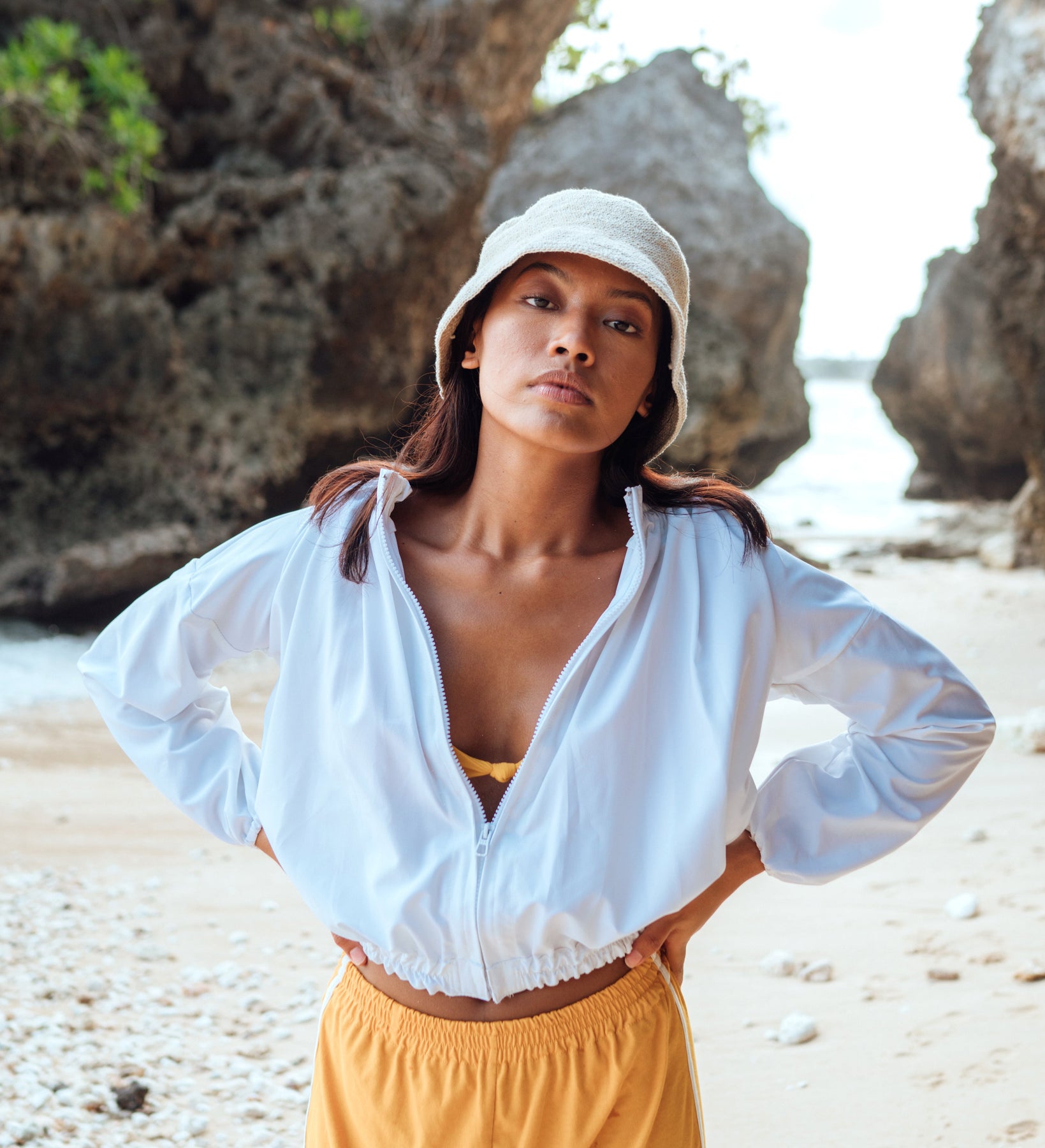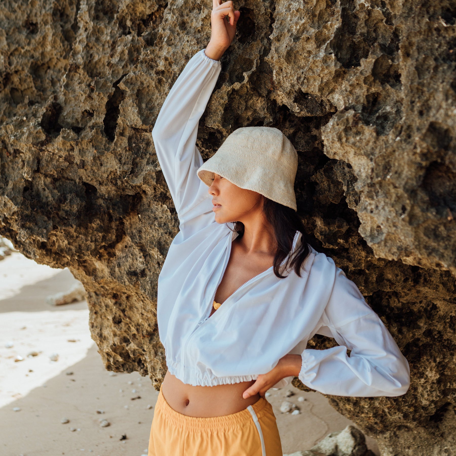 Introducing NORMA BLANCO: the light and breathable liquid-repellent jacket made of REPREVE's recycled plastic bottles fabric. This amazing fabric is so soft and airy you won’t believe it actually repels fluid and has UV50+ protection as well, to keep you comfortable in any weather. Easily channel from work to beach and evening events with its bold & stylish design which fits for every occasion. Our NORMA BEE jacket features chic puffy sleeves for the perfect “barely-there” feels and provides extra comfort for the skin.