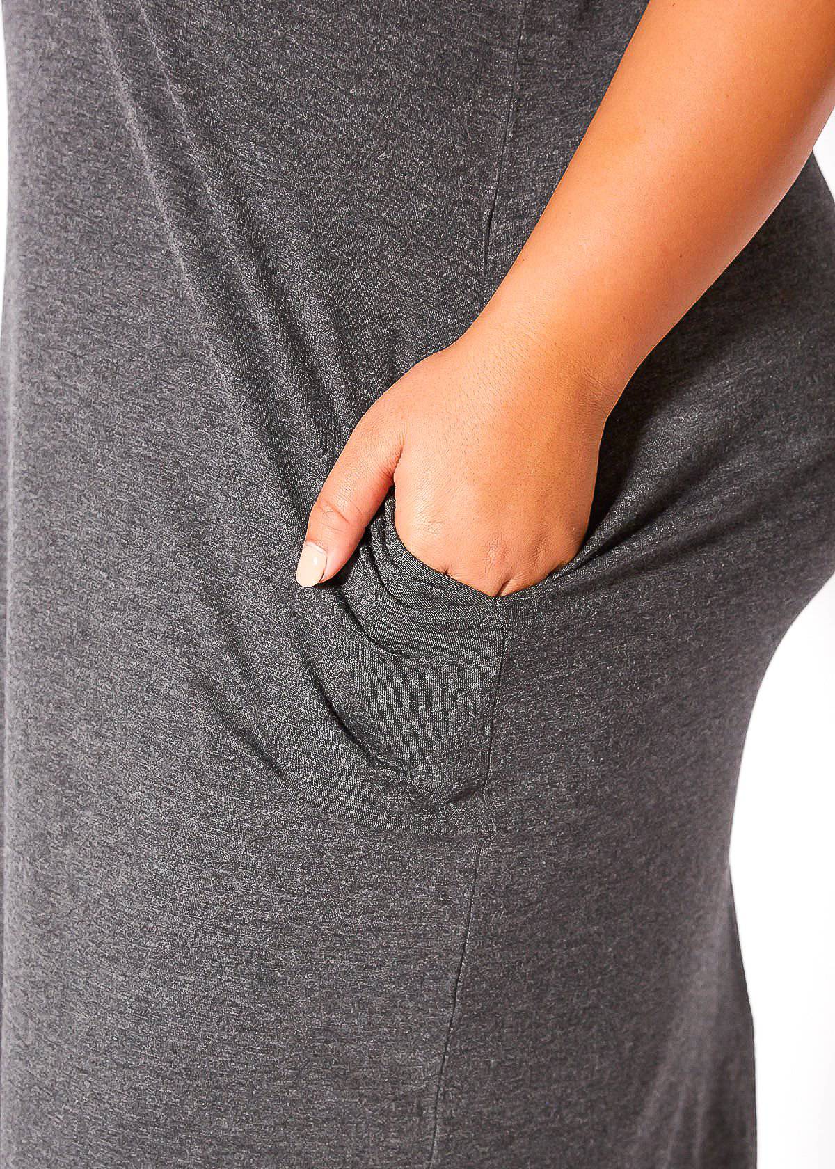 Look cool and comfy AF in this laidback Women's Round Neck T-shirt Dress With Pocket! With its short sleeves, basic V-neck, and loose fit, it's perfect for relaxing days or taking it easy with friends on your leisure time.