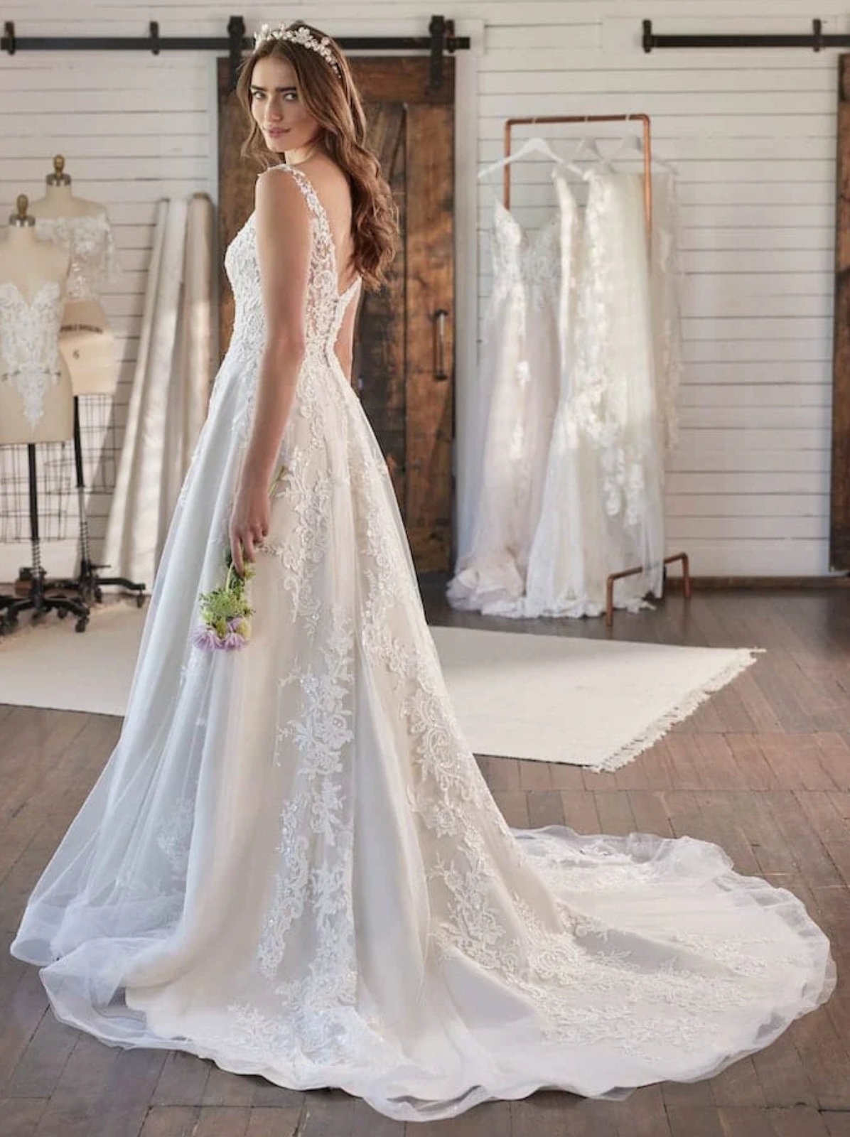 Sale wedding dresses, bridal party dresses and bridal accessories come to us directly from small independent retailers and brands and are mostly discontinued samples.  This merchandise has never been previously purchased or altered, and while most of these goods are in immaculate condition normal wear and tear can occur during previous try on.  Any defects outside of normal wear are disclosed in each listing.