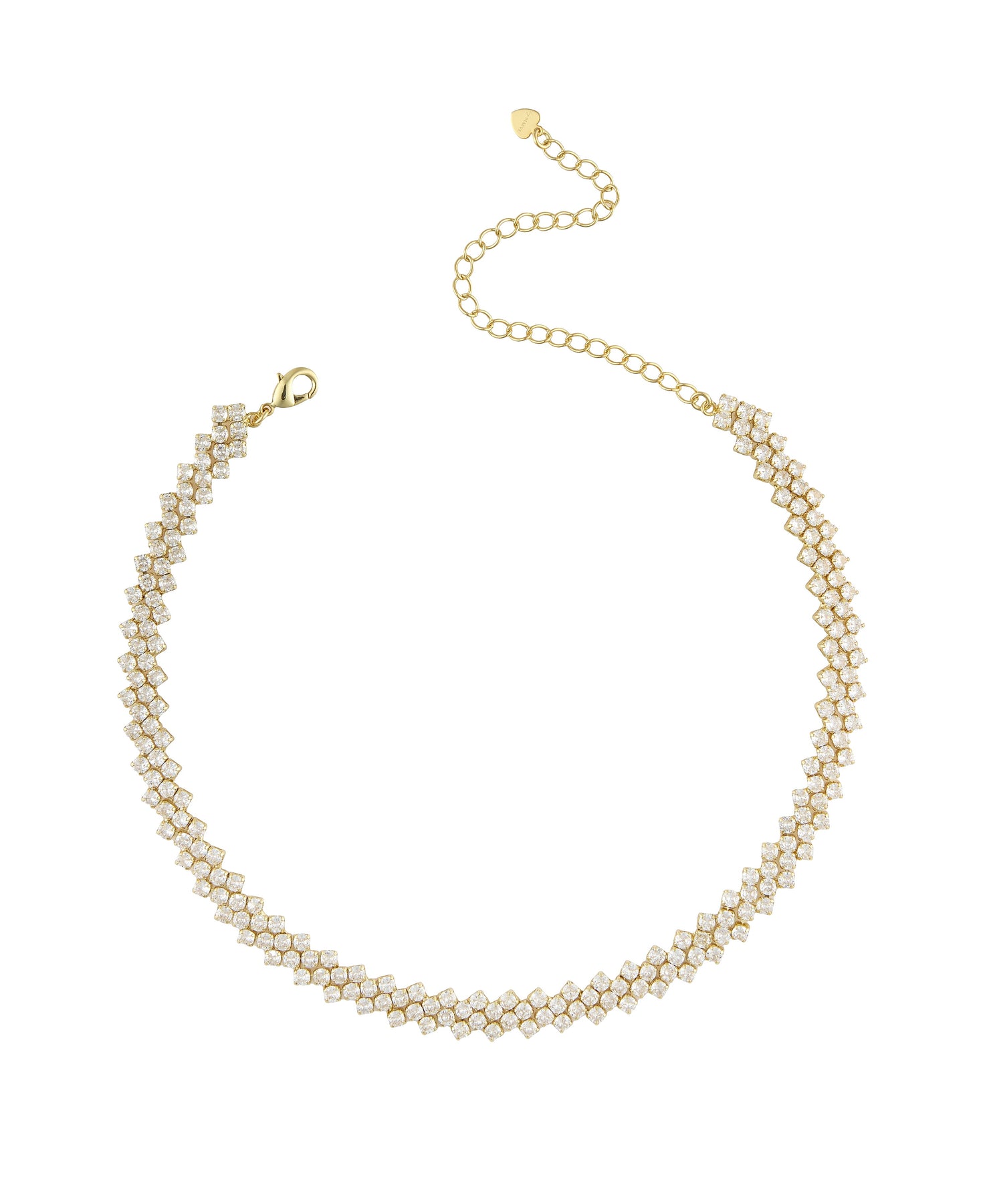 Luxurious gold chain necklace, created with 18K gold plated brass and cubic zirconia.