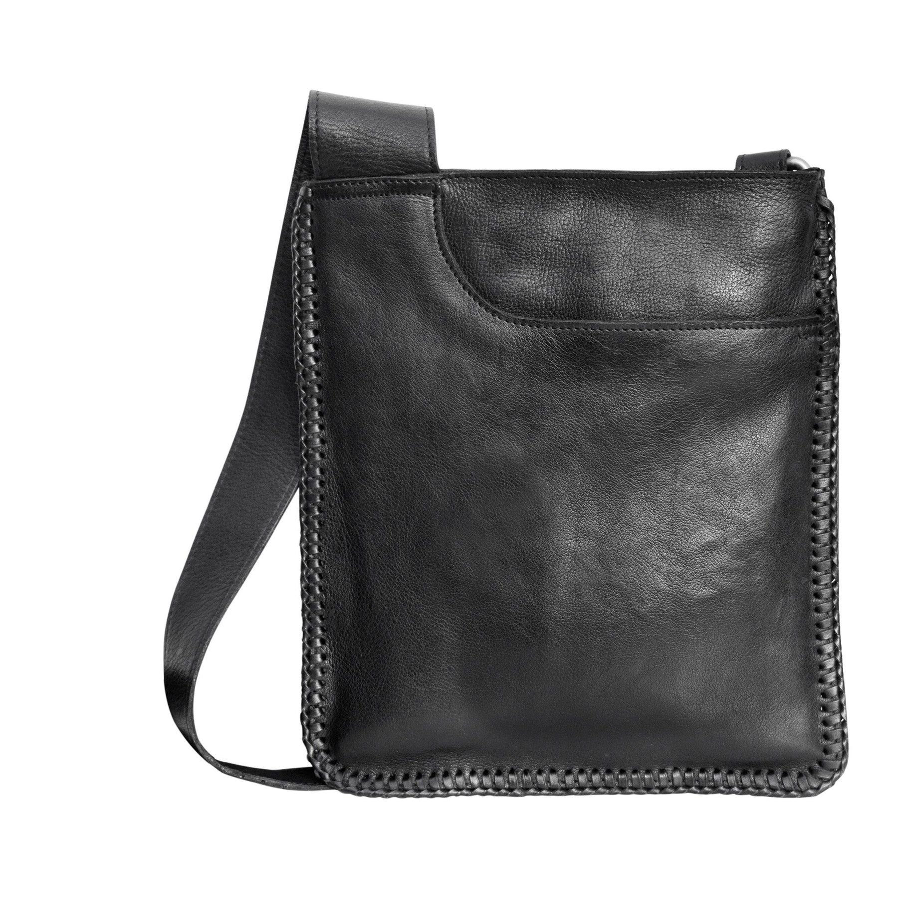 • Sleek styled crossbody with three exterior pockets - one zippered, two open