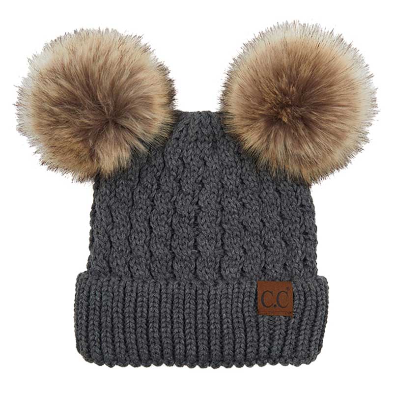 C.C Double Pom Pom All Over Cable Knit Beanie Hat, Stay warm and cozy this winter with this. Expertly crafted from a premium cable knit fabric, this stylish beanie provides maximum insulation and breathability. A Double pom pom on top adds a touch of flair to your look. Perfect for the chilly winter days, this pom pom beanie is an ideal winter gift.