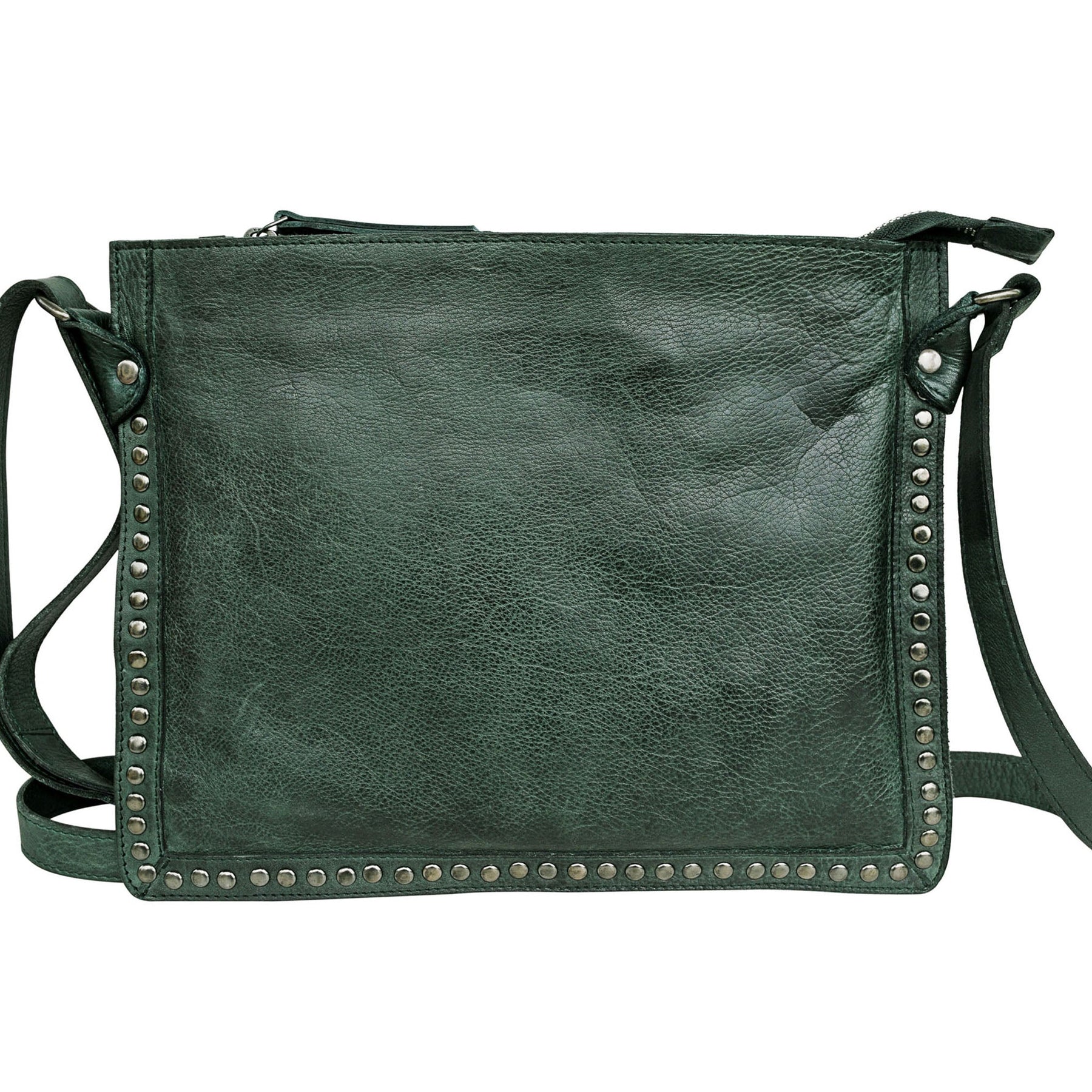 • Envelope Style Crossbody's exterior features stud detail, cell phone pocket with hidden magnetic snap closure