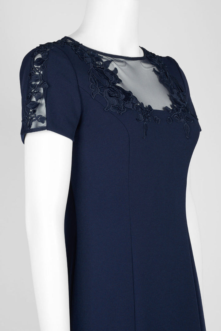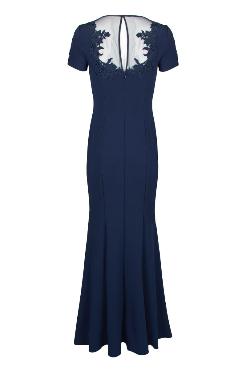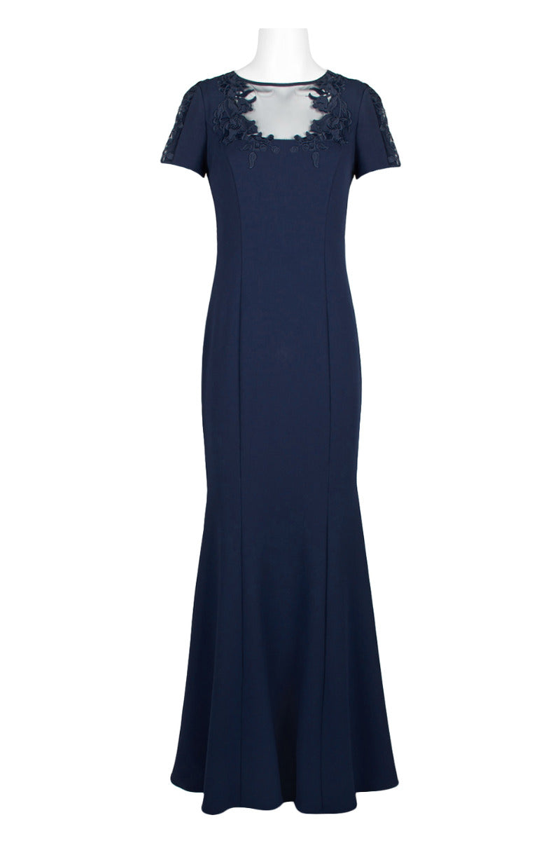 Aidan Mattox Illusion Embellished Crew Neck Short Sleeve Trumpet Keyhole Back Concealed Zipper Back Crepe Dress by Curated Brands