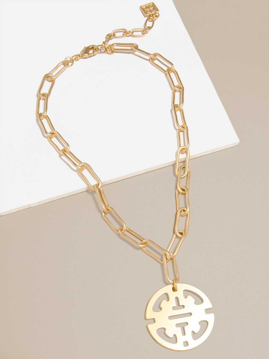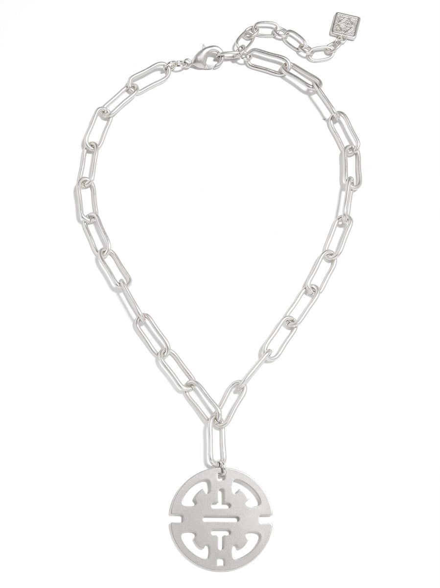 Shine on! Our traveling pendant necklace is now in metal for a sophisticated statement.