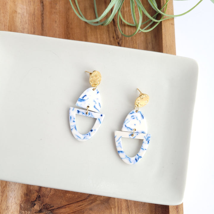 Athena is our layered dangle style with two semi-oval charms that give it a unique shape. It is part of our Greek Goddess collection inspired by the beautiful whites and blues of Greece.